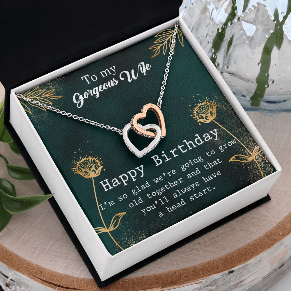 To My Gorgeous Wife Necklace Pendant Gift From Husbnd Habby Birthday A Head Start With Message Card and Gift Box. Valentine's Day Gift For Wife Future Wife Interlocking Hearts Necklace