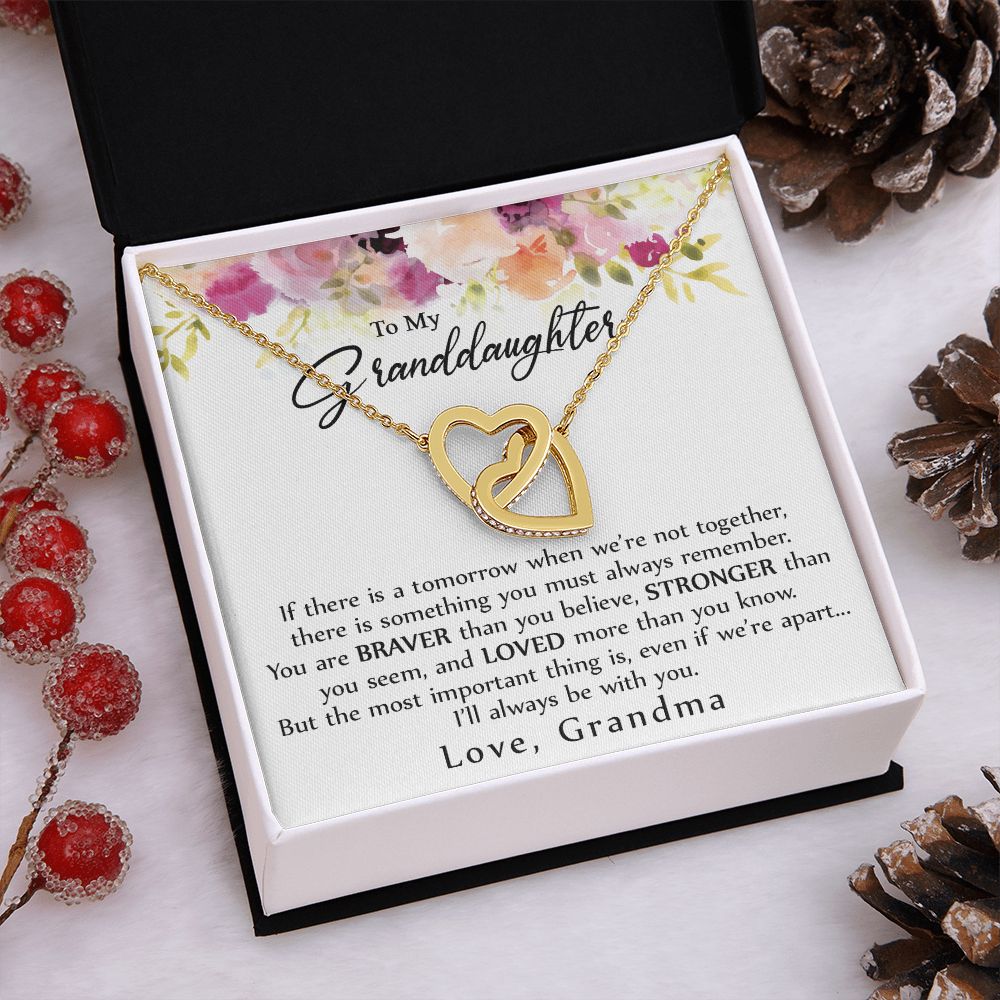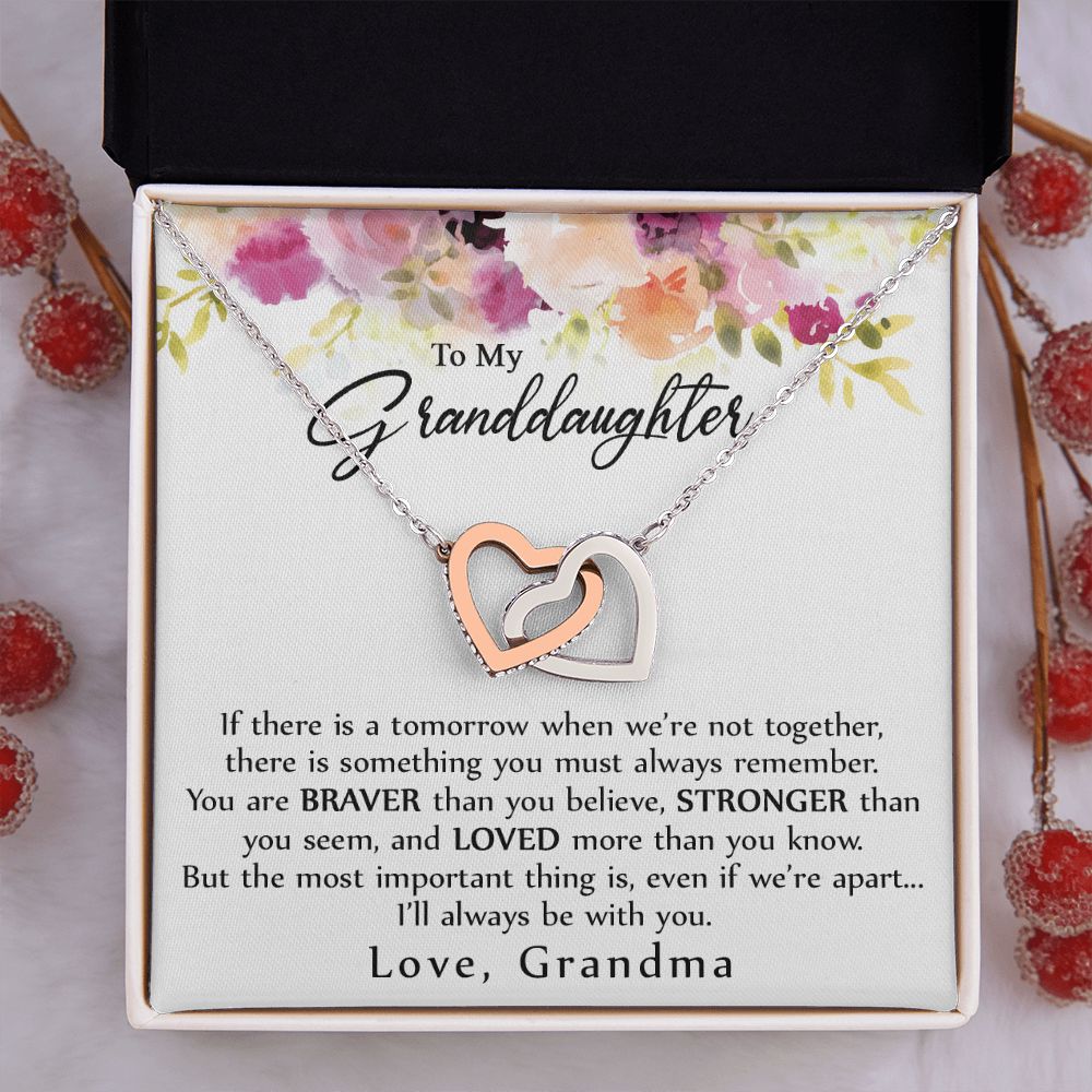 To My Granddaughter Love Knot Necklace, Graduation Gift For Girl From Grandma Interlocking Hearts Necklace