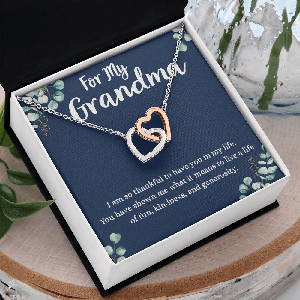 To My Grandma Necklace, Gift for Grandmother Necklace, Mothers Day Gift For Grandma Nana, Grandma Jewelry From Grandchildren GrandKids , Jewelry Box Gift For Grandma Grandmother4 Interlocking Hearts Necklace