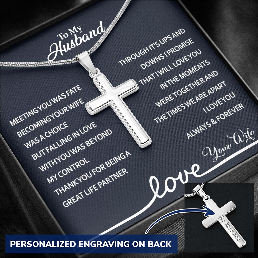 To My Husband Cross Necklace, Husband Necklace from Wife, Gifts For Husband From Wife, Gift For Groom From Bride On Wedding Day, Aniversary Birthday Gift For Him, Valentine Gift for Men 1 Personalized Cross Necklace
