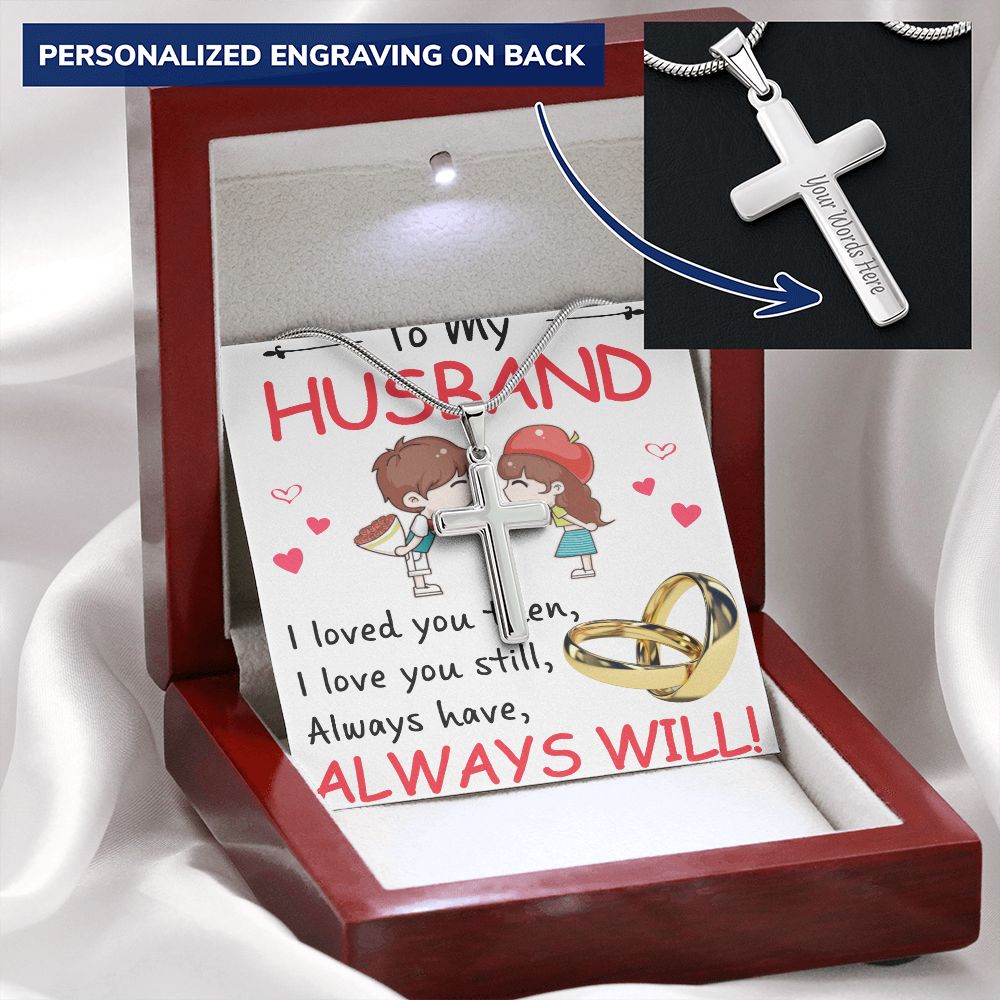 To My Husband Cross Necklace, Husband Necklace from Wife, Gifts For Husband From Wife, Gift For Groom From Bride On Wedding Day, Aniversary Birthday Gift For Him, Valentine Gift for Men Personalized Cross Necklace