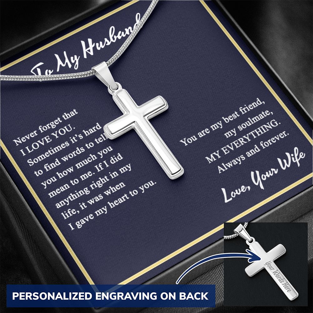 To My Husband Cross Necklace, Husband Necklace from Wife, Gifts For Husband From Wife, Gift For Groom From Bride On Wedding Day, Aniversary Birthday Gift For Him, Valentine Gift for Men5 Personalized Cross Necklace