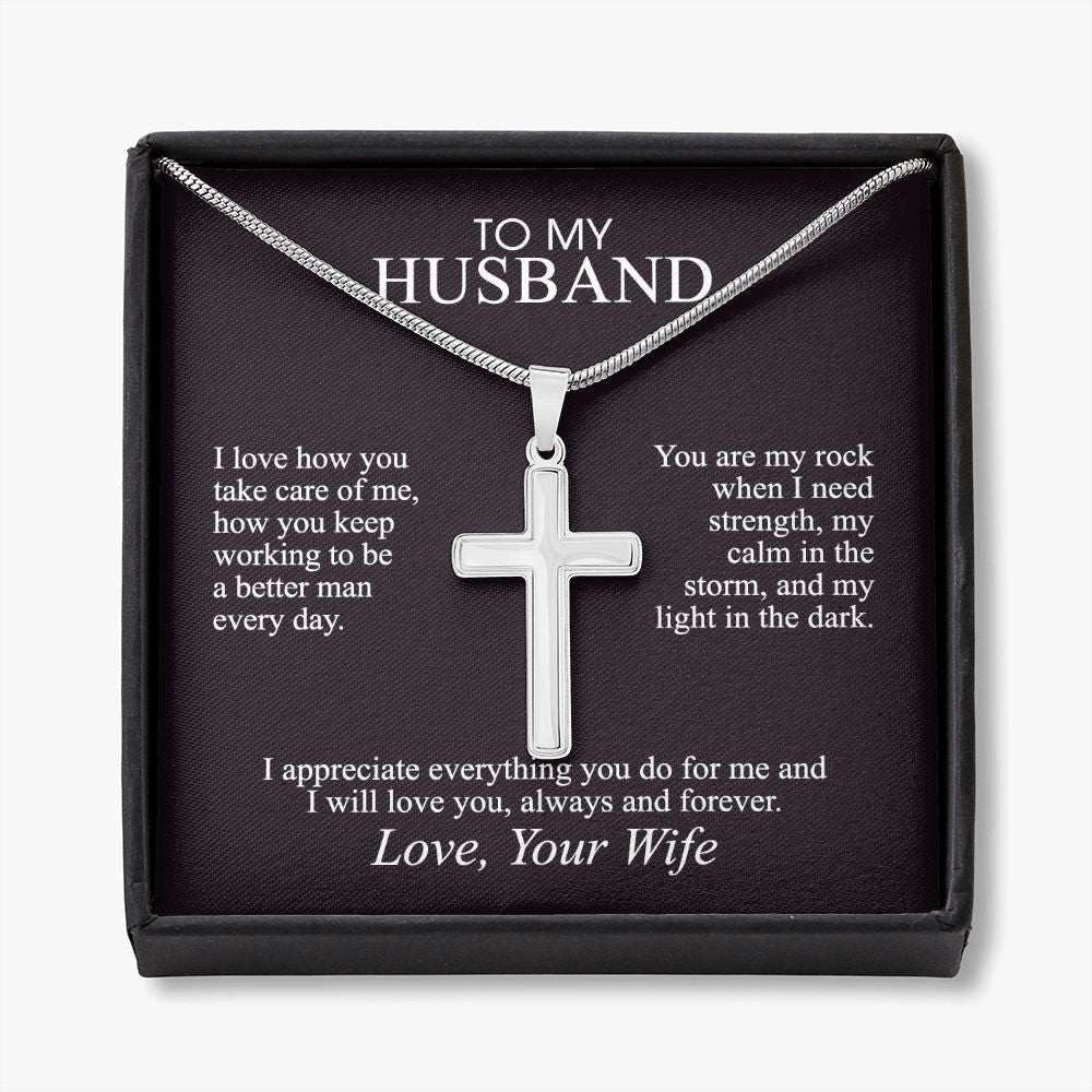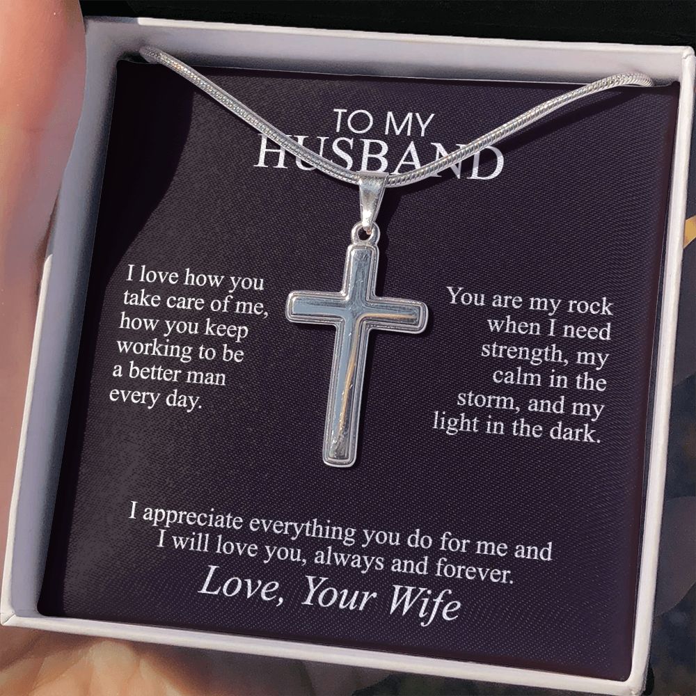 To My Husband Cross Necklace, Husband Necklace from Wife, Gifts For Husband From Wife, Gift For Groom From Bride On Wedding Day, Aniversary Birthday Gift For Him, Valentine Gift for Men9 Personalized Cross Necklace