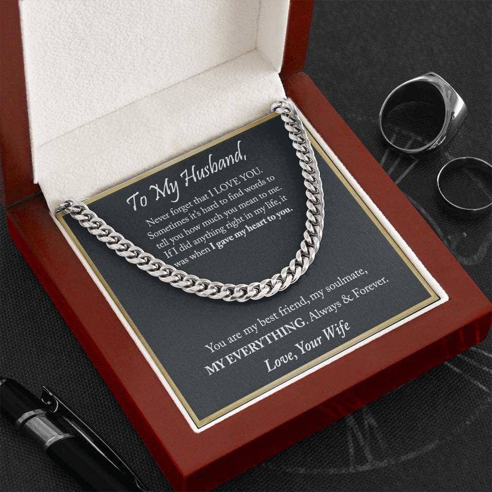 To My Husband Cuban Chain Necklace, Anniversary Christmas Gifts For Husband