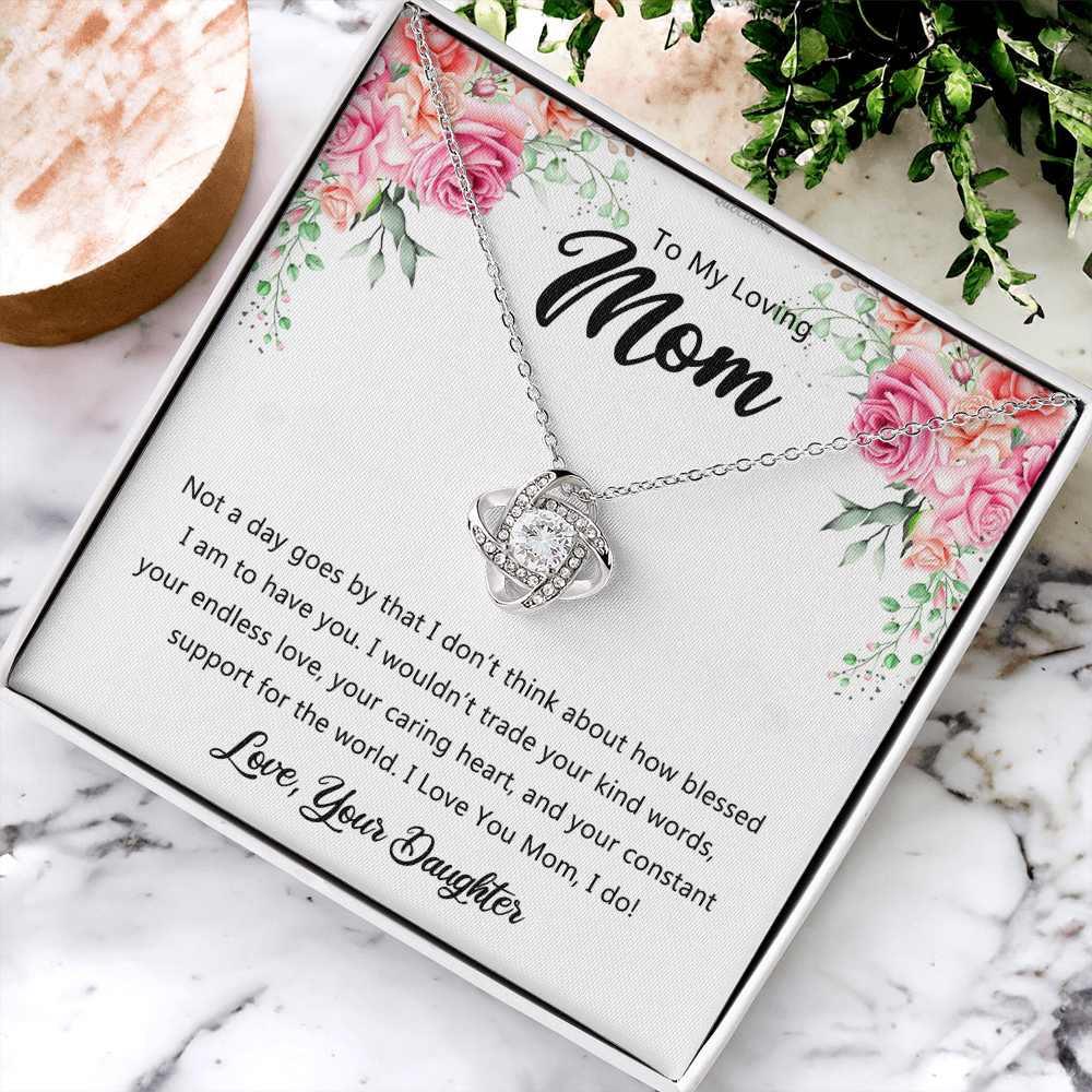To My Loving Mom Necklace From Daughter, Happy Mother's Day Necklace, To My Mom Love Knot Necklace, Mother And Daughter Necklace Gift For Mom On Mother's Day, Birthday Gift Anniversary Jewelry Gift