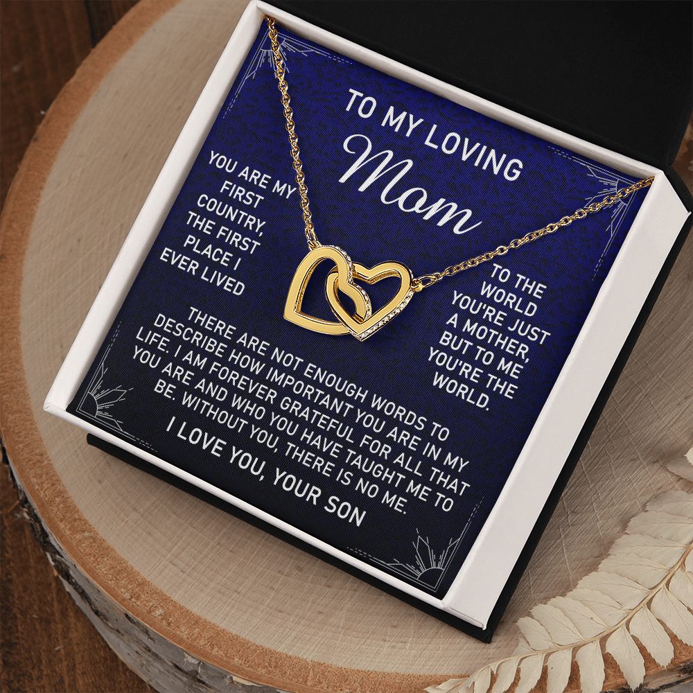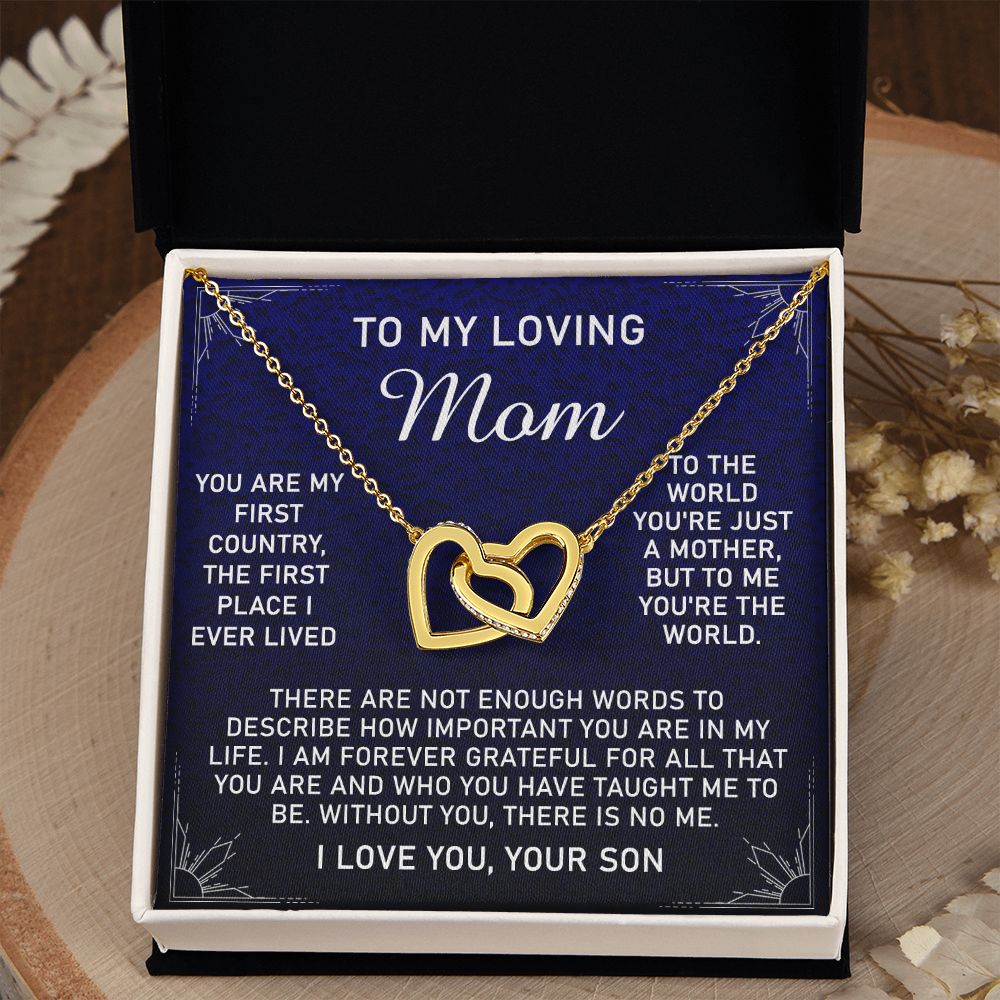 To My Loving Mom Necklace, Gift for Mom from Son, Mother's Day Jewelry Gift, Necklace for Mom Birthday Anniversary Mother's Day Jewelry Gift, To My Mom Necklace from Son Interlocking Hearts Necklace