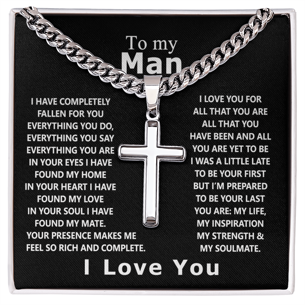 To My Man Cross Necklace From Soulmate, Girls Jewelry Gift For Men, Mans Necklace Gifts, Boyfriend Necklace Gift From Girlfriend, Cross Necklace For Husband From Wife Cross Necklace Gift For Him