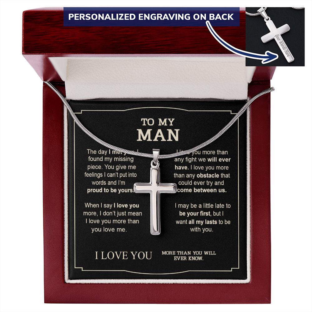 To My Man Cross Necklace From Women, Wife From Husband Gifts Cross Necklace For Man On Birthday Communion Present Necklace From Fiance, Jewelry Gift For Men, Stainless Cross Necklace Gift For Him Personalized Cross Necklace 2222