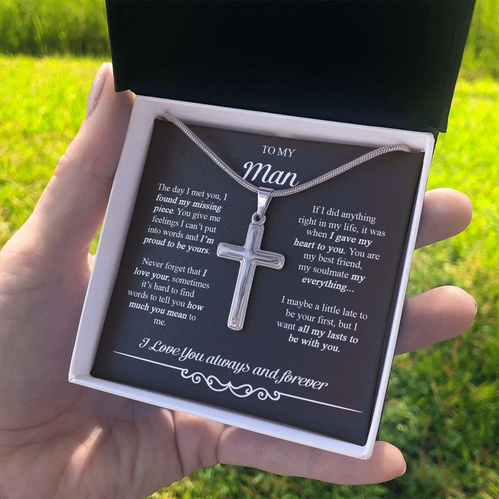 To My Man Cross Necklace From Women Wife Soulmate, Girlfriend To Boyfriend Cross Necklace Birthday Gifts For Man, Anniversary Jewelry Gift For Men, Man Cross Necklace Gift For Him Necklace Pendant Personalized Cross Necklace 2222
