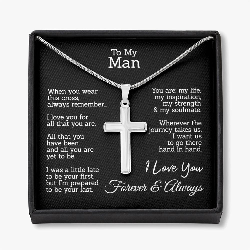 To My Man Cross Necklace Gift For Men From My Love Girlfriend Soulmate Wife Silver Gifts Jewelry For Men Stainless Artisan Crafted Cross Necklace with Message Card Luxury Box Personalized Cross Necklace
