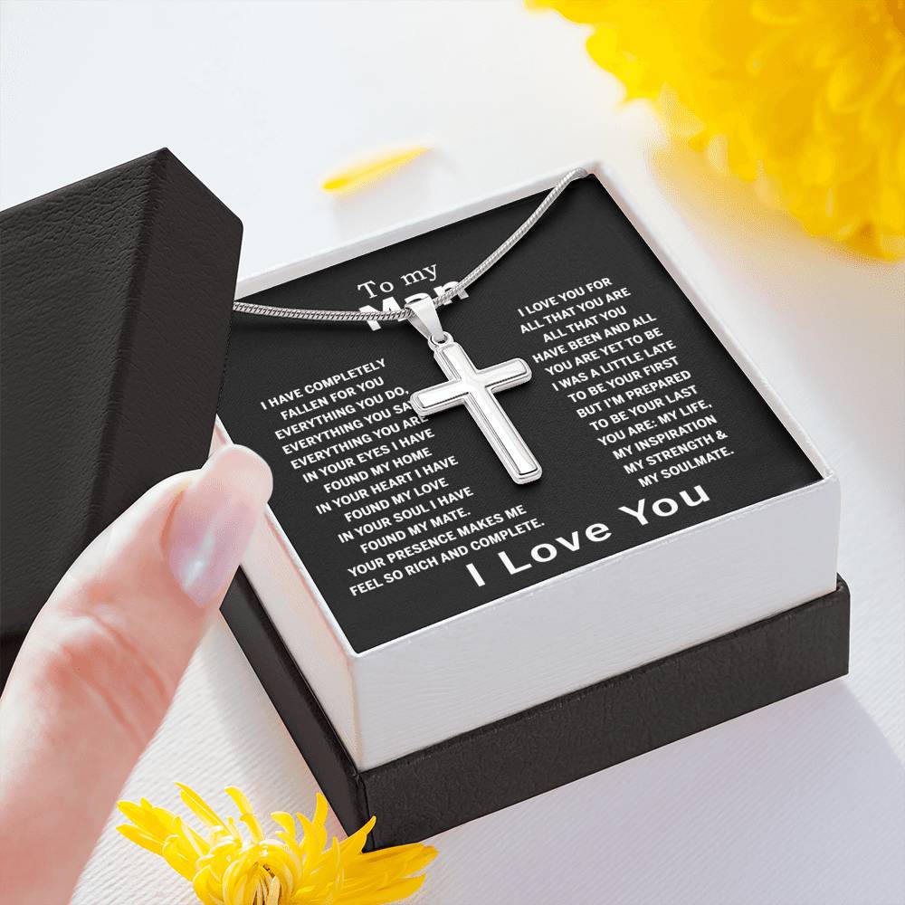 To My Man Cross Necklace Jewelry For Men, Man Necklace Silver From My Love Gift