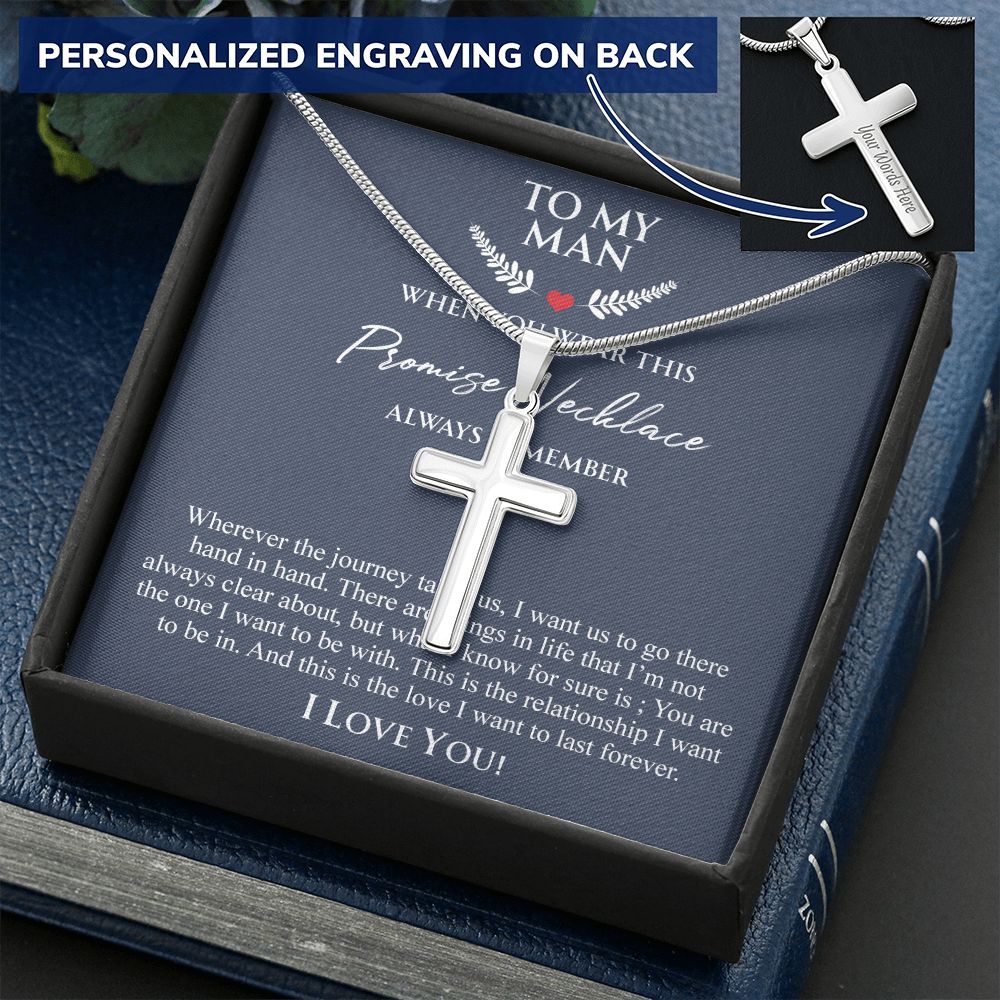 To My Man Necklace Anniversary Gift for Boyfriend, Boyfriend Birthday Gift 175087501988 Personalized Cross Necklace