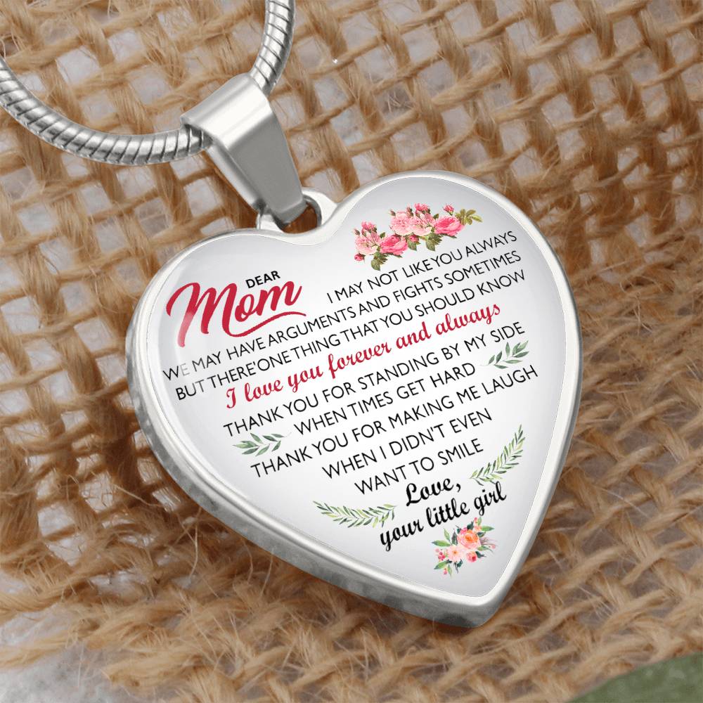 To My Mom, Dear Mom Love You Heart Necklace Luxury Silver Gold Includes Gift Box