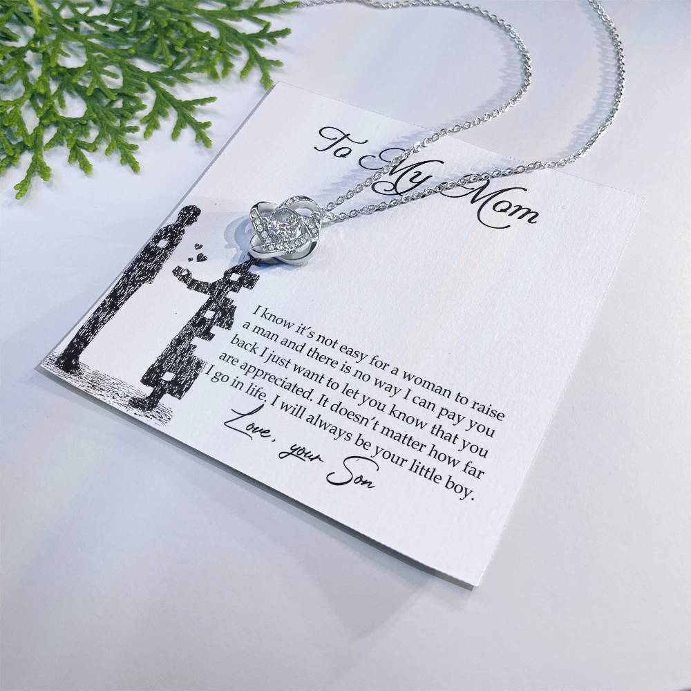 To My Mom Love Knot Necklace Pendant Gift From Son And Happy Mother's Day Necklace Gift For Mom Birthday Anniversary I Know It's Not Easy For A Woman To Raise A Man Mother And Daughter Gift Neckl Love Knot Necklace 6323