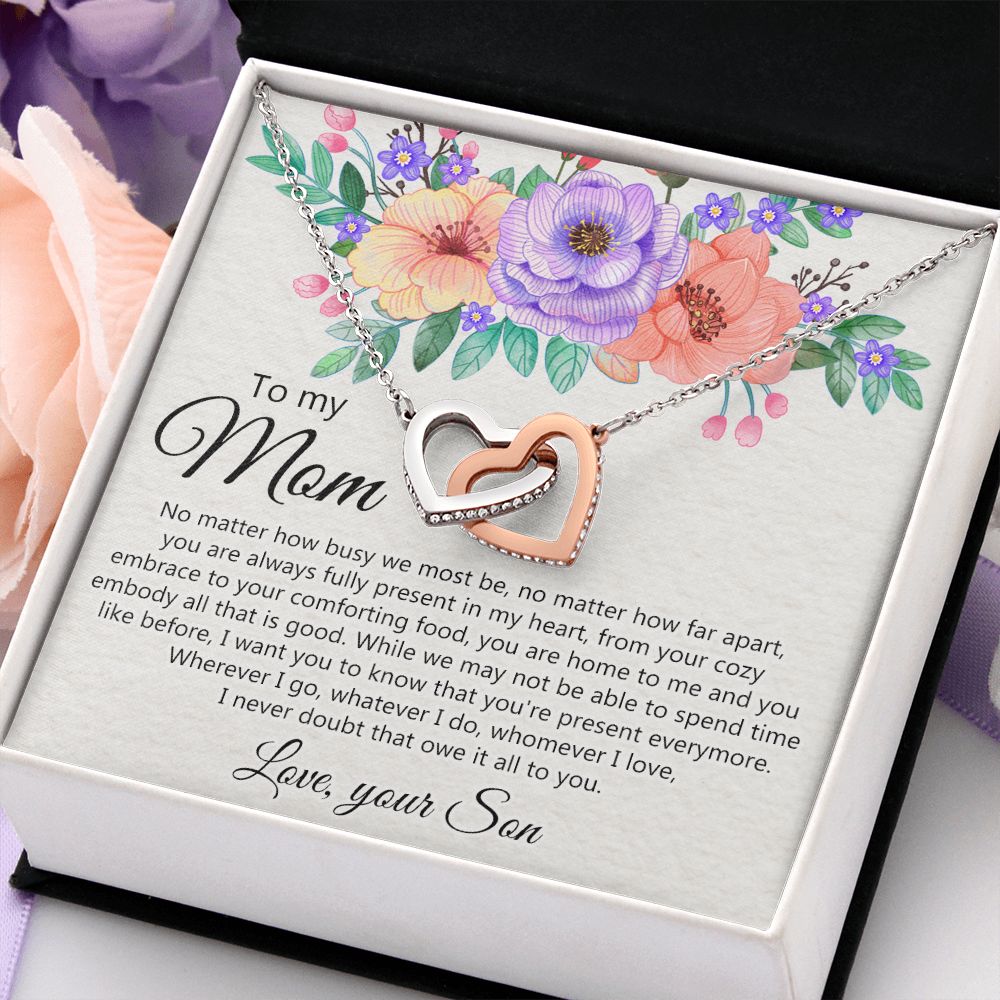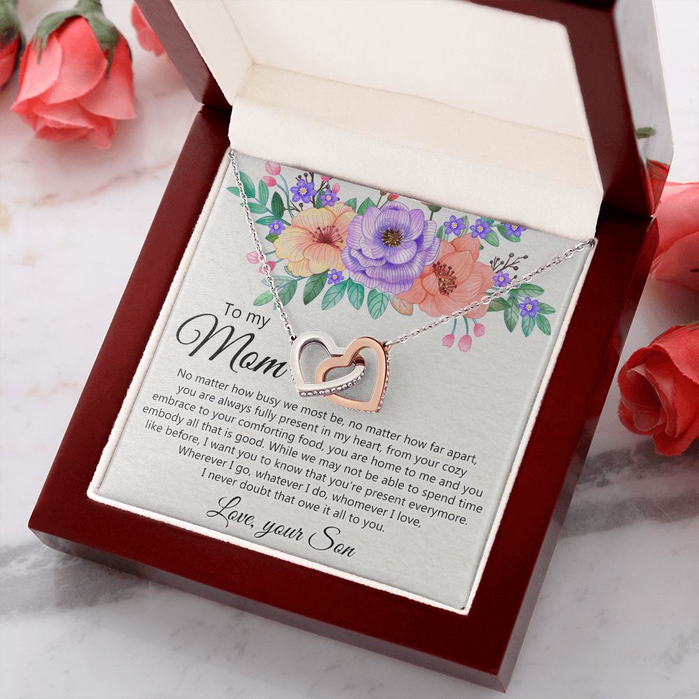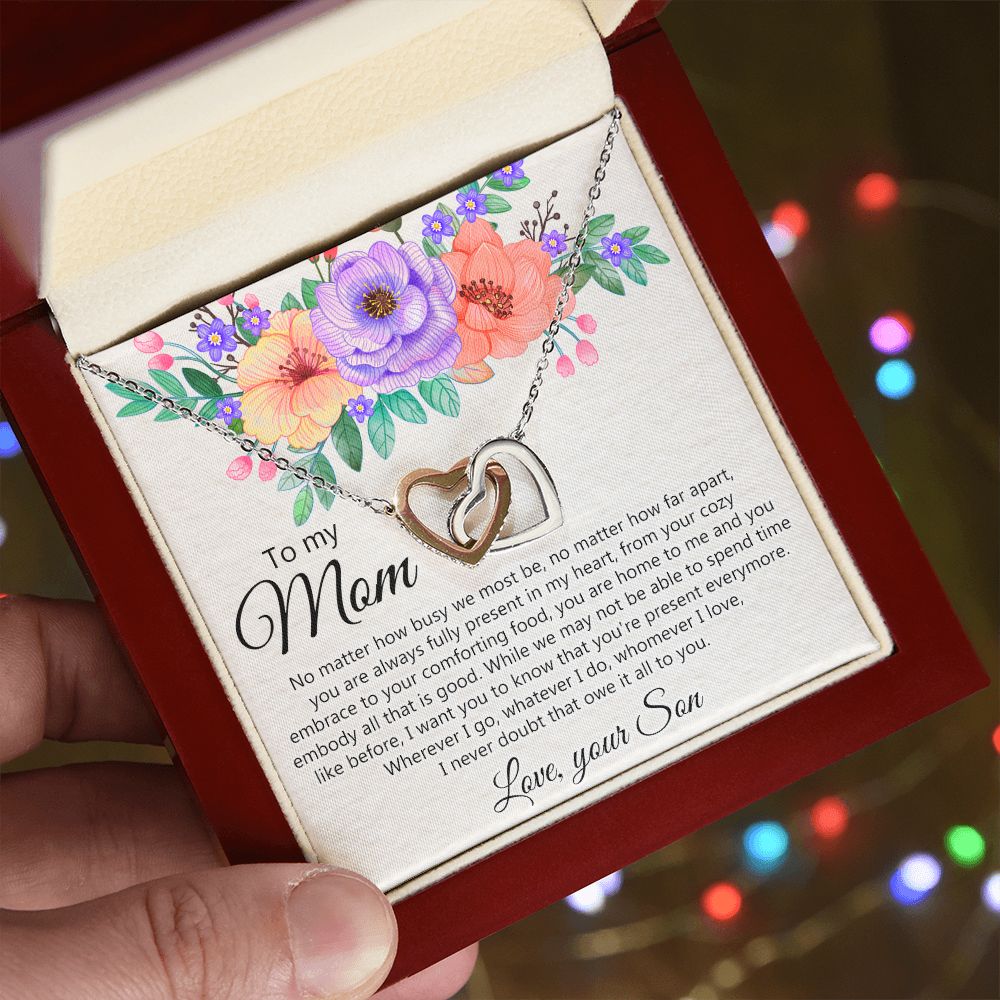 To my Mom Love Your Son Necklace, Meaningful Gift for Mom Necklace Jewelry for Women, Gift for Mom from Son, Son to Mom Jewelry Box, Mom Gift on Mother's Day Birthday Holiday Present Interlocking Hearts Necklace