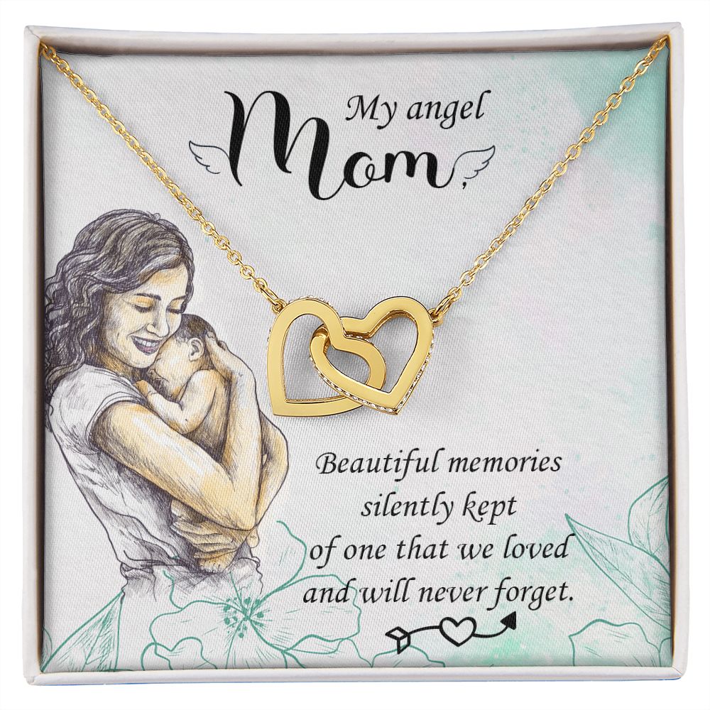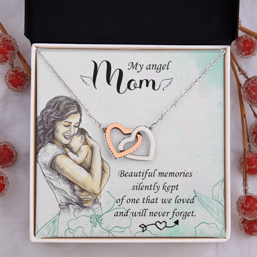 To My Mom Mother My Angel Necklace Pendant Gift From Daughter Beautiful Memories With Message Card Gift For Mom Interlocking Hearts Necklace