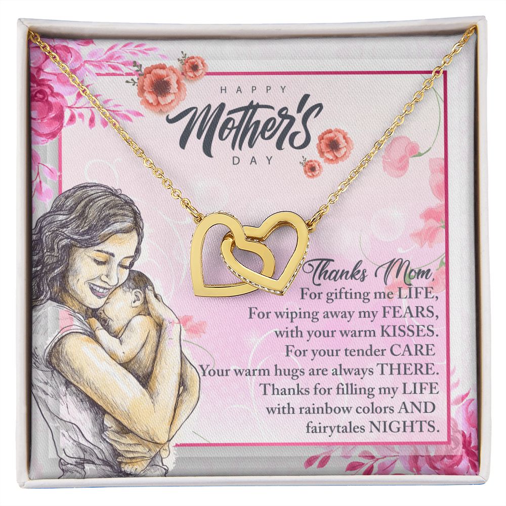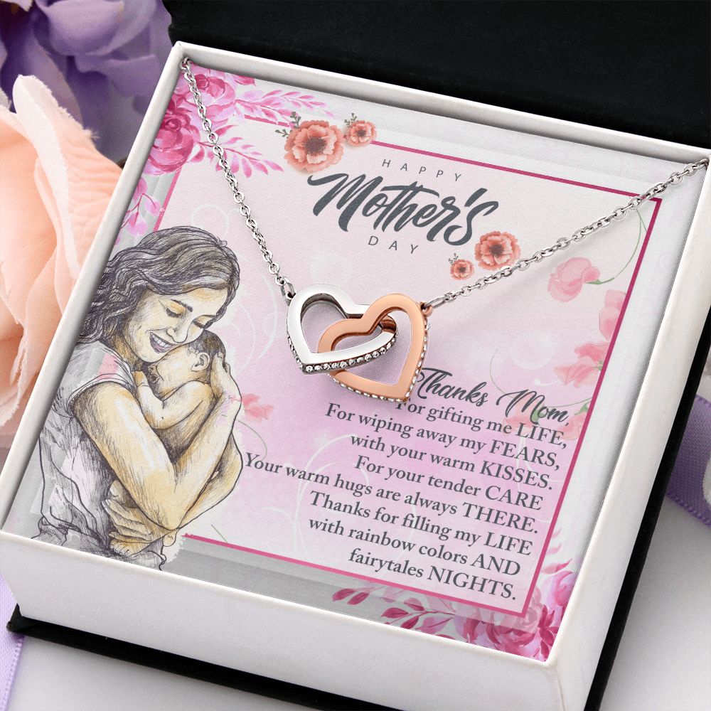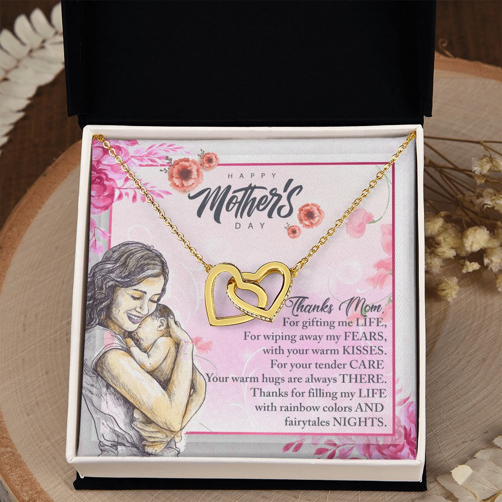 To My Mom, Mother Necklace Pendant Gift From Daughter Or Son Thanks Mom For Gifting Me Life With Message Card Gift For Mom Interlocking Hearts Necklace
