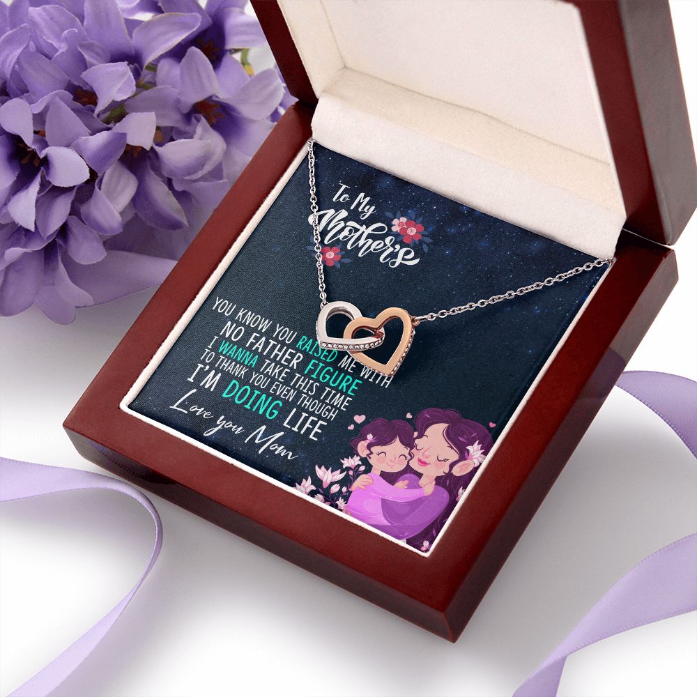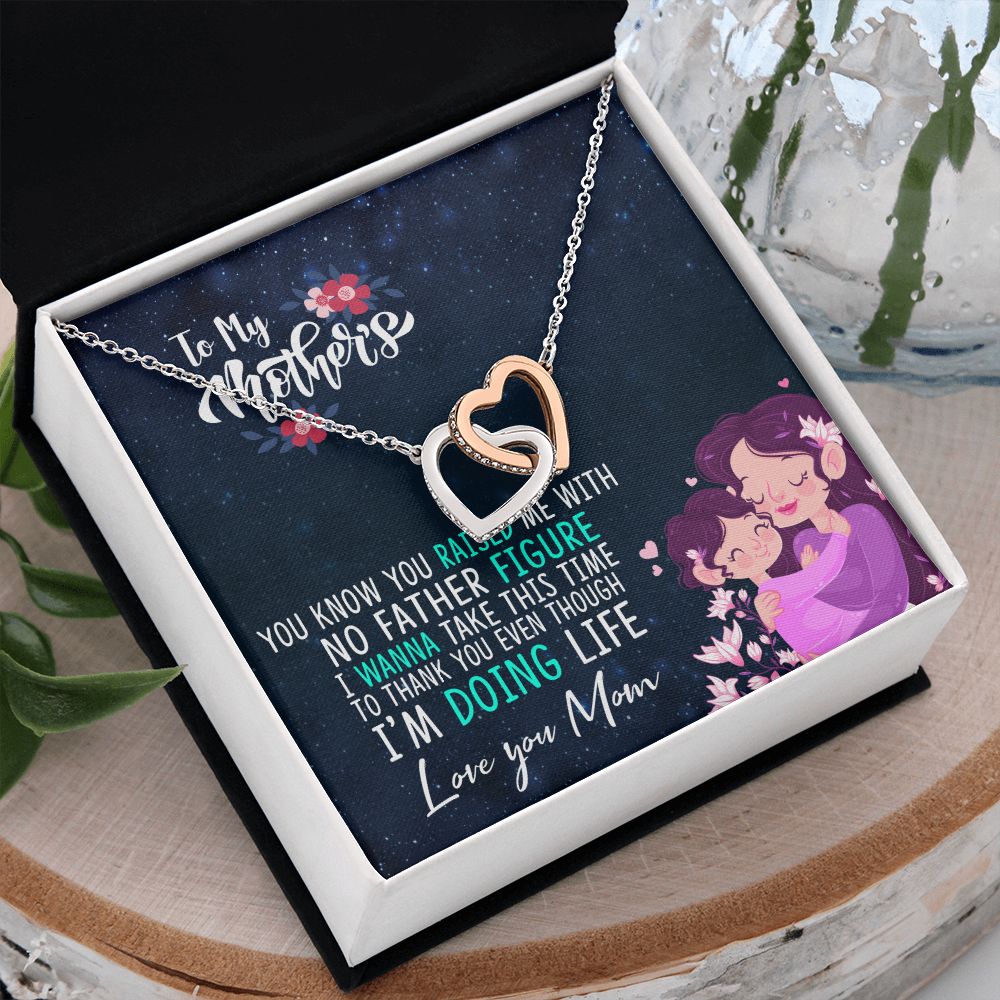To My Mom Mother Necklace Pendant Gift From Daughter Thank You Even Though I'm Doing Life With Message Card Gift For Mom Interlocking Hearts Necklace