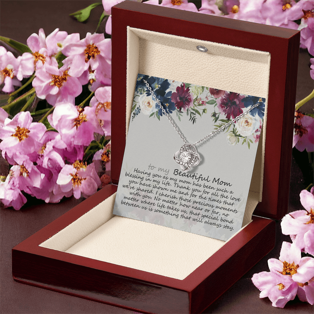To My Mom Necklace From Daughter, Mother's Day Necklace Gift For Her, Beautiful Mom Love Knot Necklace Gift For Mom Boyfriend's Mom, Bonus Mom On Mothers Day, Anniversary, Birthday, Jewelry For Mom