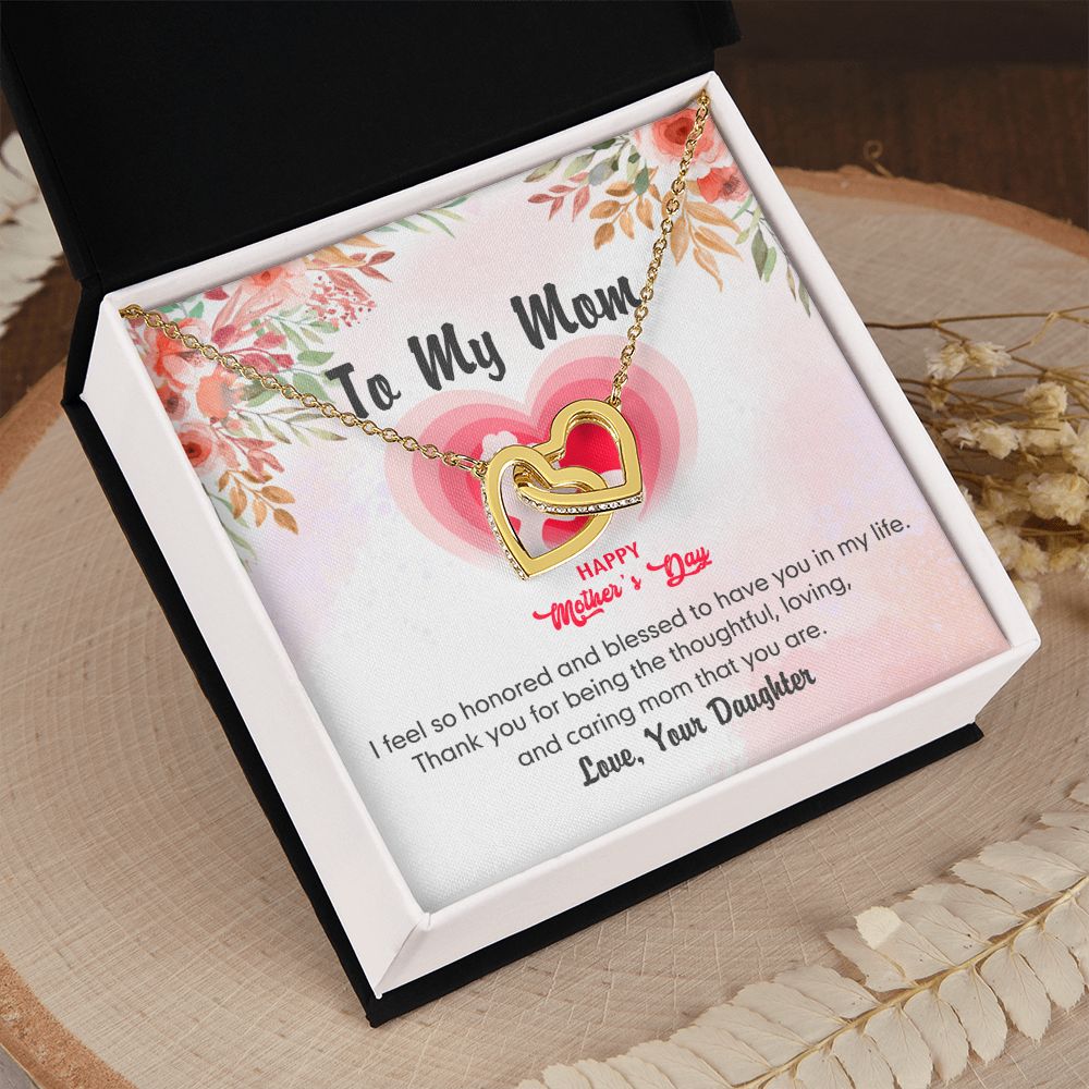 To My Mom Necklace Pendant Gift From Daughter And Happy Mother's Day Gift For Mom Birthday, Anniversary Thank You Interlocking Hearts Necklace