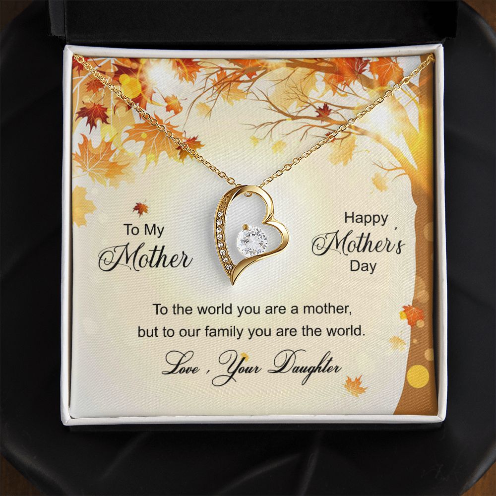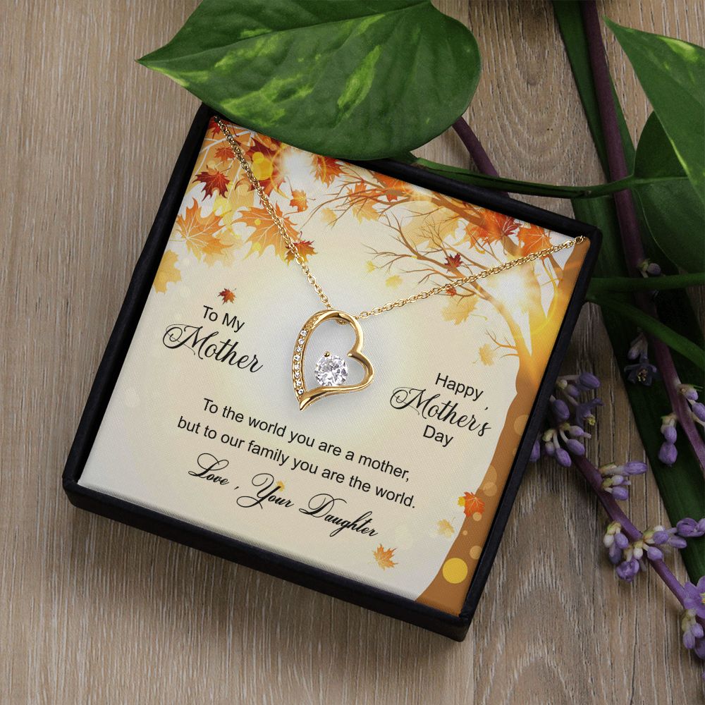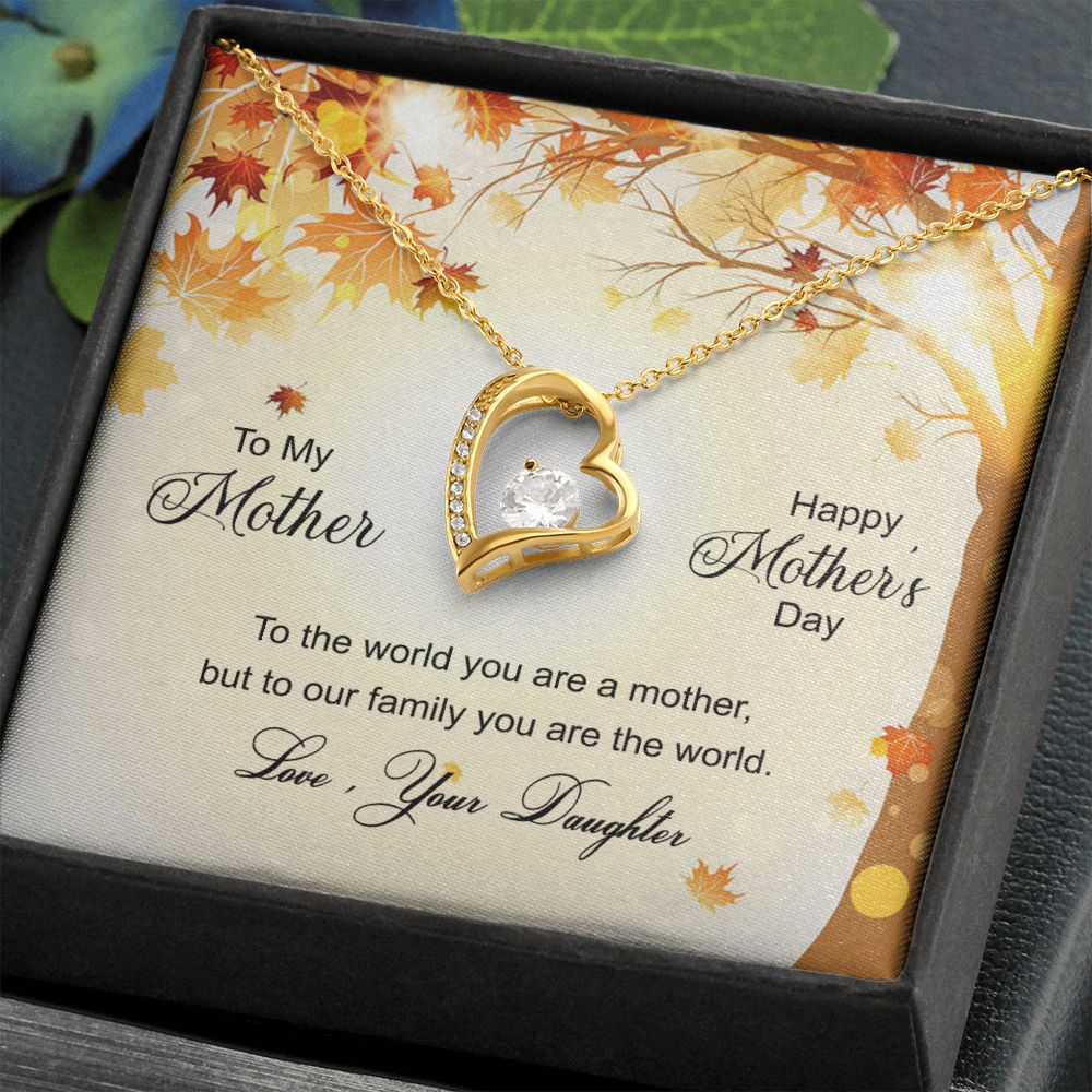 To My Mom Necklace Pendant Gift From Daughter And Happy Mother's Day Gift For Mom Birthday, Anniversary To The World A Mother Family Forever Love Necklace