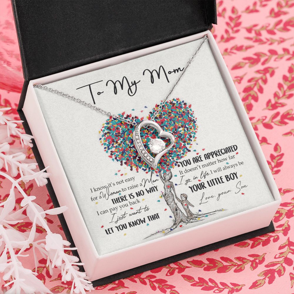 To My Mom Necklace Pendant Gift From Son And Happy Mother's Day Gift For Mom Birthday, Anniversary You Are Appreciated I Go In Life Your Little Boy Forever Love Necklace