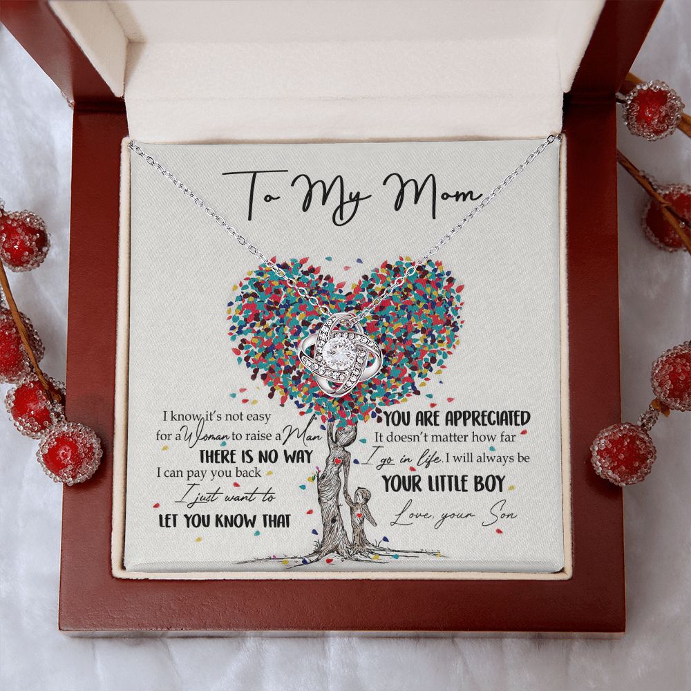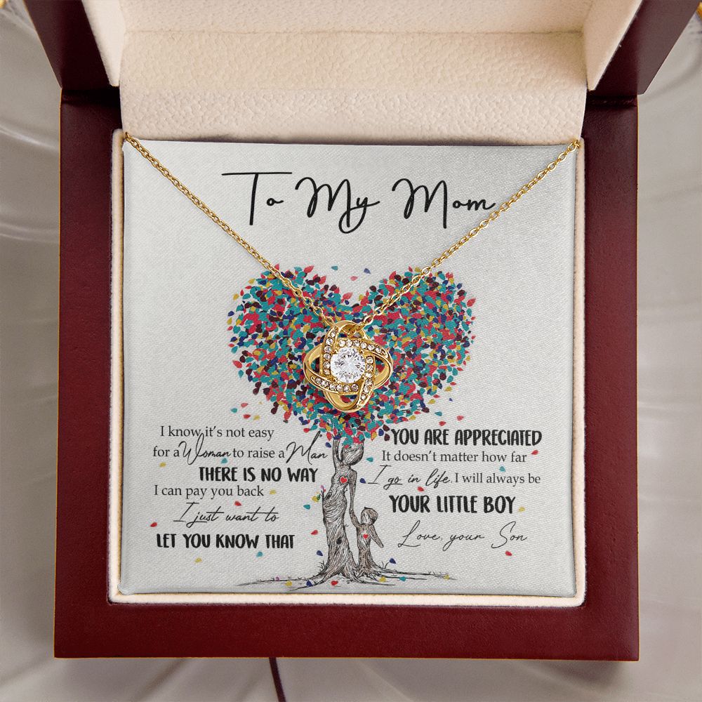 To My Mom Necklace Pendant Gift From Son And Happy Mother's Day Gift For Mom Birthday, Anniversary You Are Appreciated I Go In Life Your Little Boy Love Knot Necklace for Mom from Son