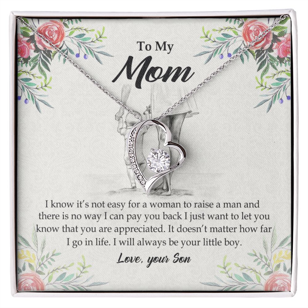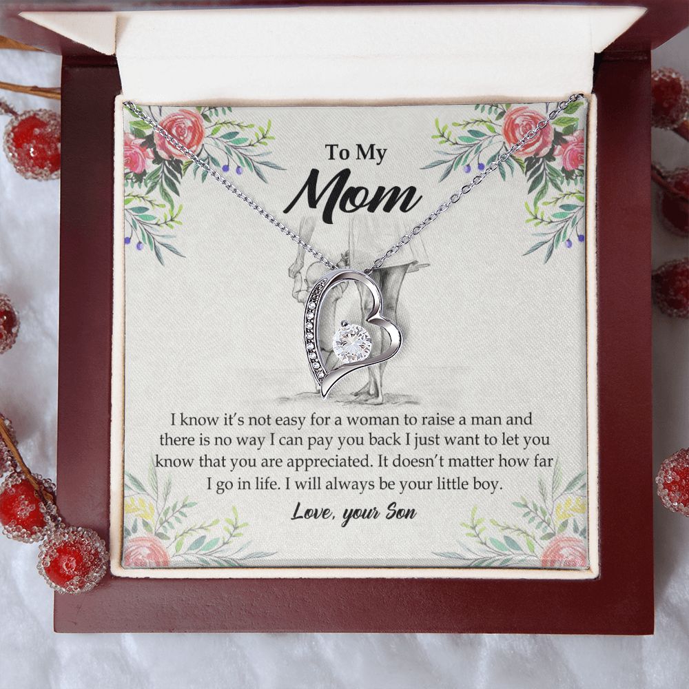 To My Mom Necklace Pendant Gift From Son And Happy Mother's Day Gift For Mom Birthday, Anniversary Your Little Boy Forever Love Necklace