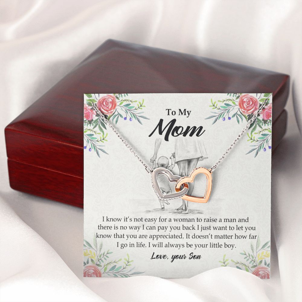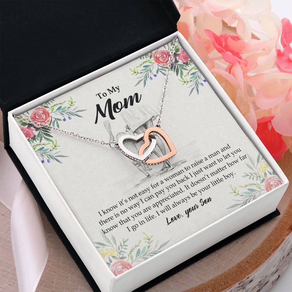 To My Mom Necklace Pendant Gift From Son And Happy Mother's Day Gift For Mom Birthday, Anniversary Your Little Boy Interlocking Hearts Necklace