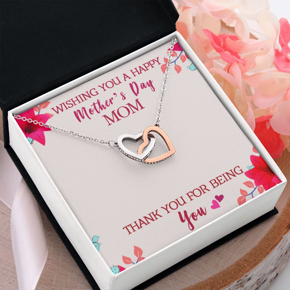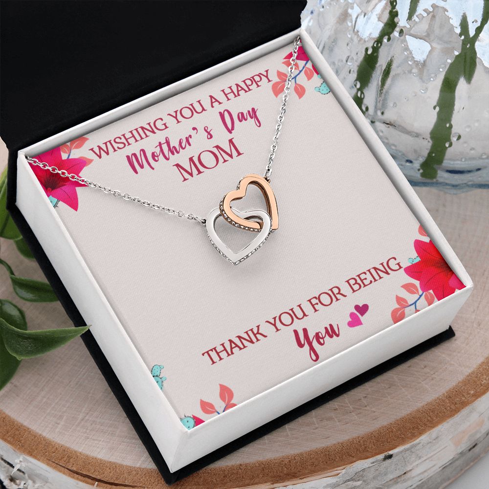 To My Mom Wishing You A Happy Mother's Day Gift From Daughter Or Son Thank You For Being You With Message Card Gift For Mom Interlocking Hearts Necklace
