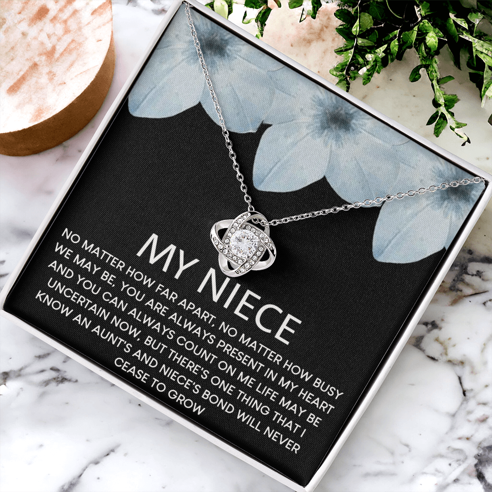 To My Niece Love Knot Necklace From Aunt, Niece Confirmation, Niece With Message Card and Gift Box Necklace Gift from Aunt or Uncle Aunt Niece Necklace, Niece Birthday Gift, Niece Graduation Gift