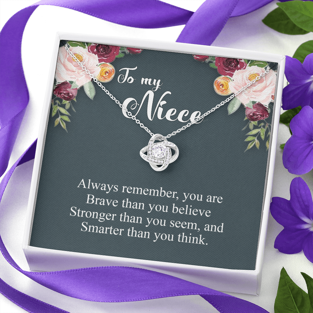 To My Niece Pendant Gift Necklace From Aunt, Niece Confirmation, Niece Birthday With Message Card and Gift Box Niece Necklace Gift from Aunt or Uncle You Are Braver, Smarter, Stronger Jewelry