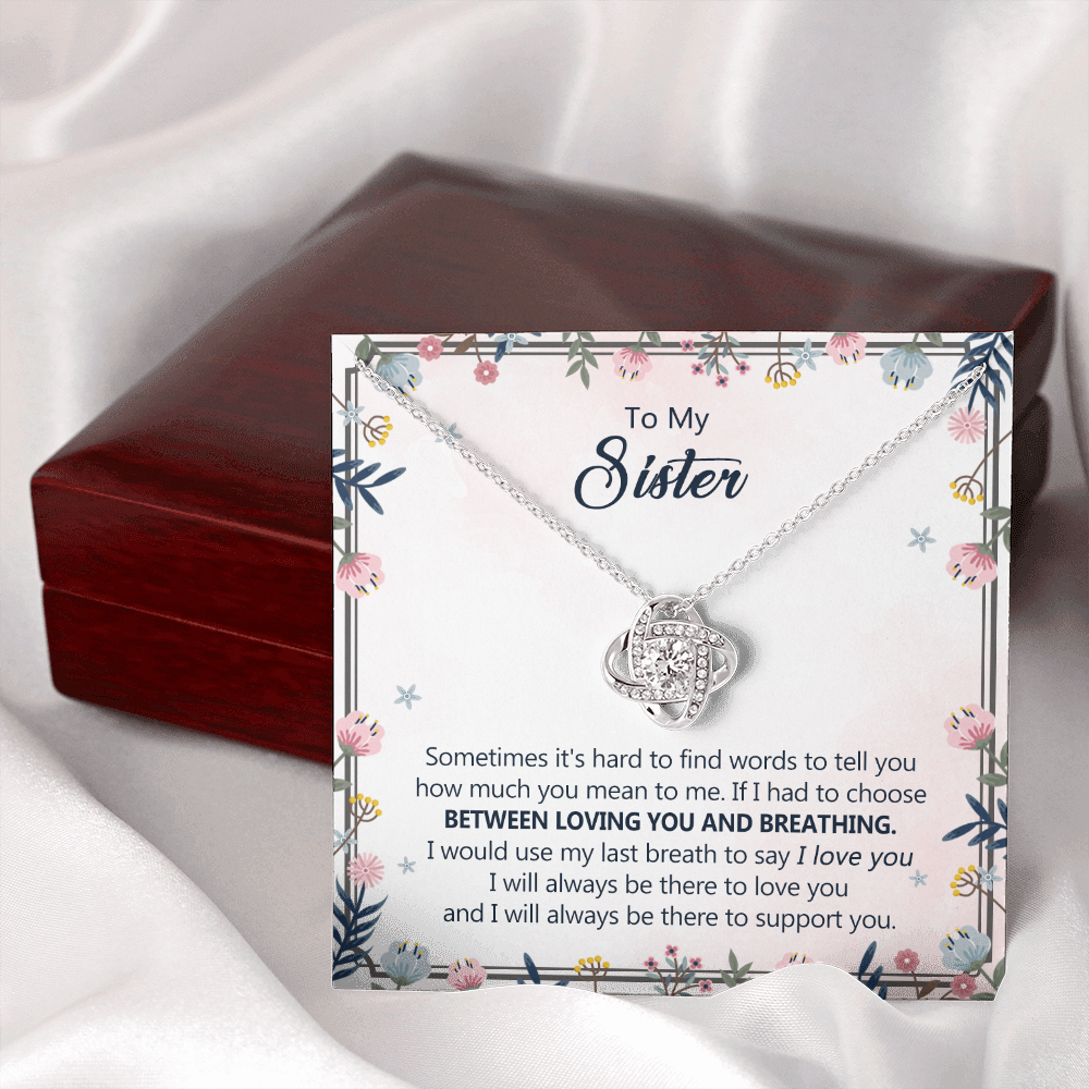 To My Sister Love Knot Necklace From Brother, Pendant Inspirational Gift Necklace For Sister, Jewelry Gift For Girls, Women Teen Sisters Gifts Necklace, Loving You And Breathing Necklace For Sister