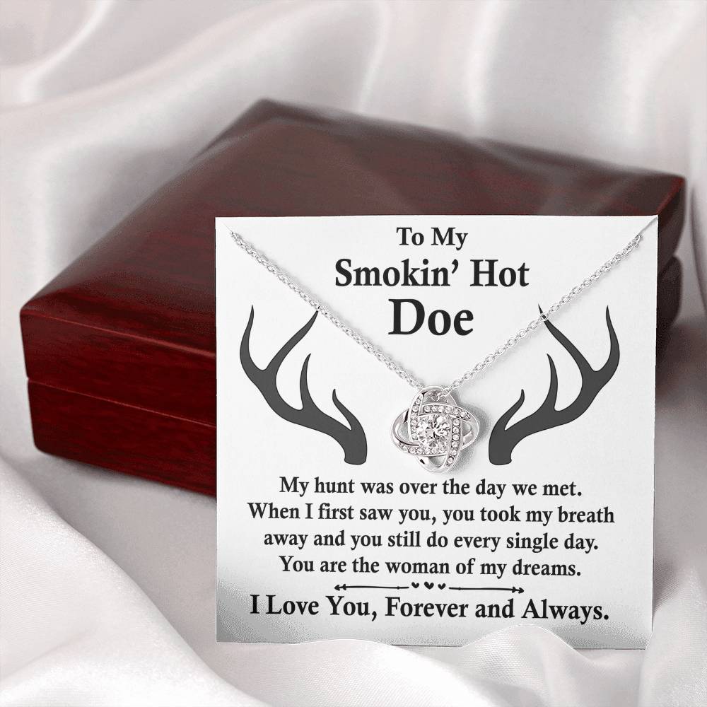 To My Smokin' Hot Doe Necklace Gift From Husband Boyfriend Dreams Love Knot Necklace Gift For Soulmate Wife with Message Card Gift Box Gift Necklace for Her Romantic, Girlfriend Gifts Necklace