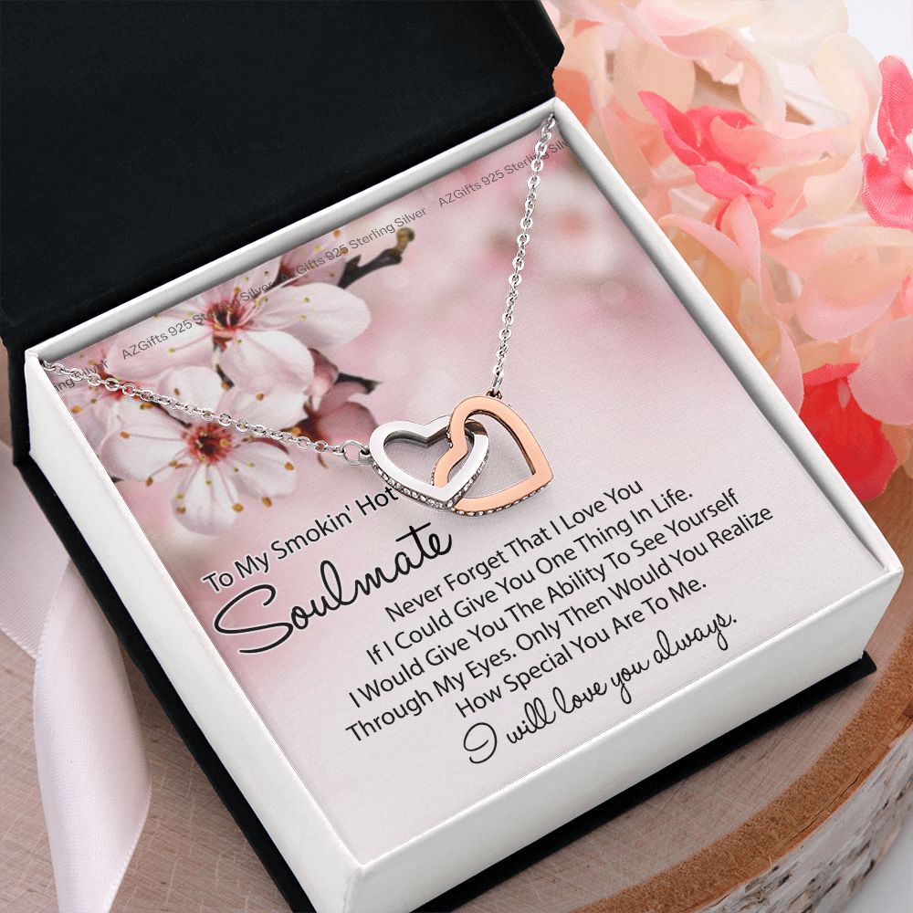 To My Smokin Hot Soulmate Necklace, Birthday Necklace For Wife, Anniversary Gift 2 Interlocking Hearts Necklace