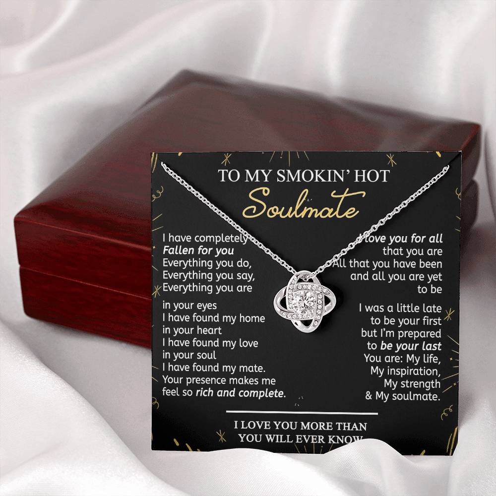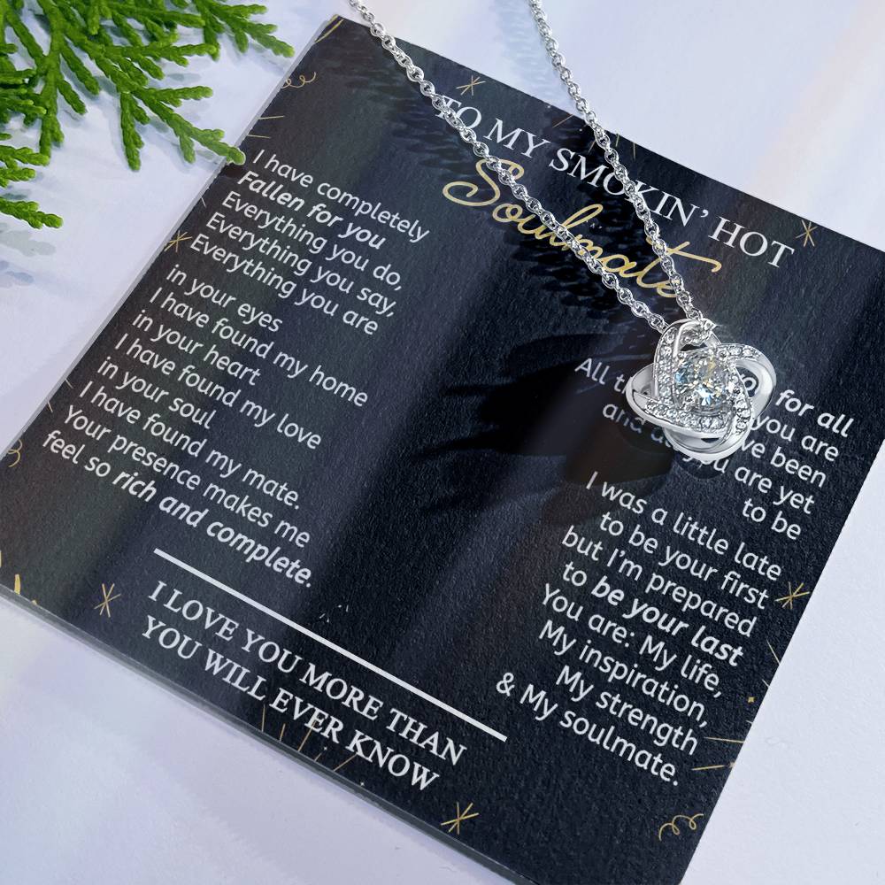 To My Smokin' Hot Soulmate Necklace From Husband, Birthday Christmas Jewelry Gifts For My Wife Love Knot Pendant Personalized Gift Necklace Present Pendant for Future Wife Soulmate Girlfriend