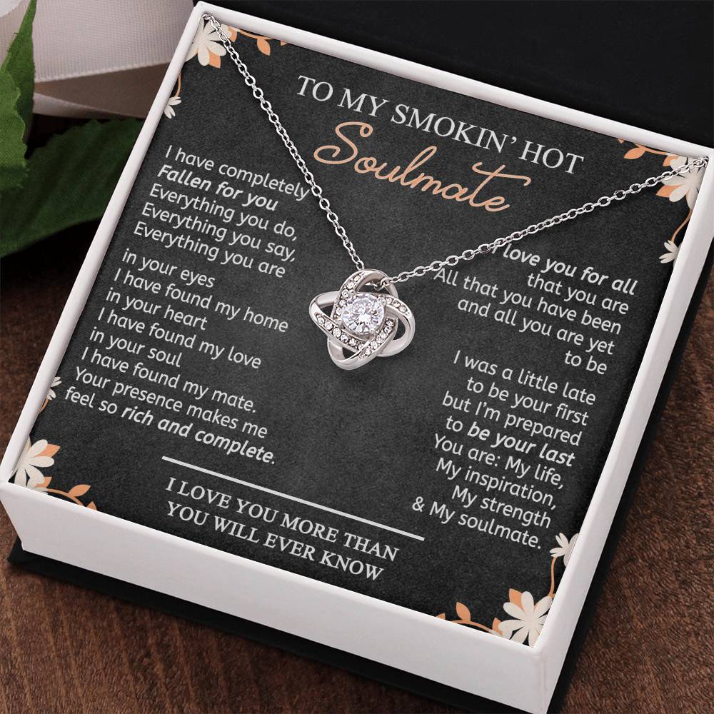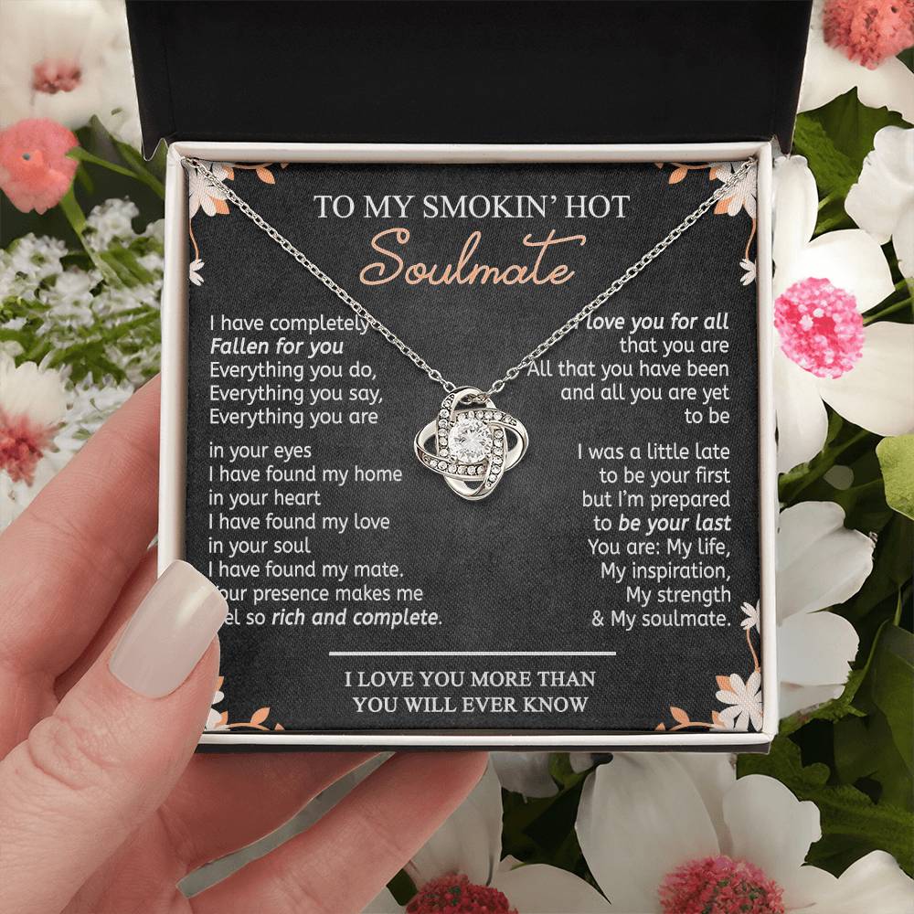 To My Smokin Hot Soulmate Necklace From Husband, Boyfriend, Gift Necklace for Smokin Hot Soulmate, Love Knot Necklace for Girlfriend, Future Wife Gift Necklace Jewelry For Wife 14k White Gold