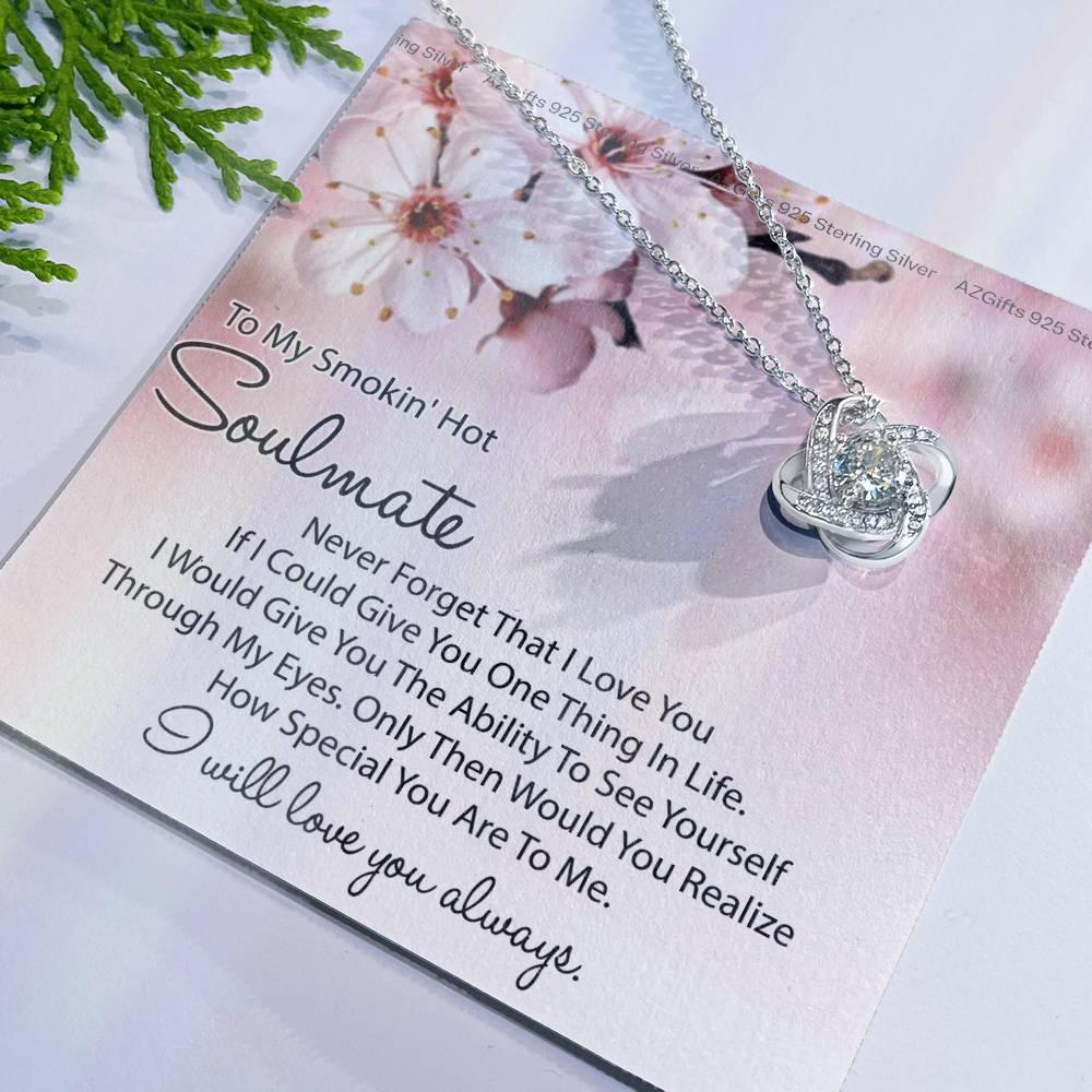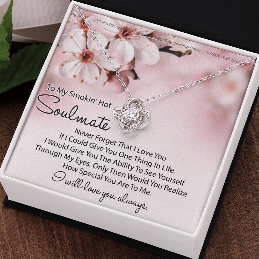 To My Smokin Hot Soulmate Necklace Gift From Husband, Boyfriend, Birthday Gift Necklace For Soulmate, Girlfriend Wife, Love Knot Necklace for Her Romantic Girlfriend Gift Necklace Message Card