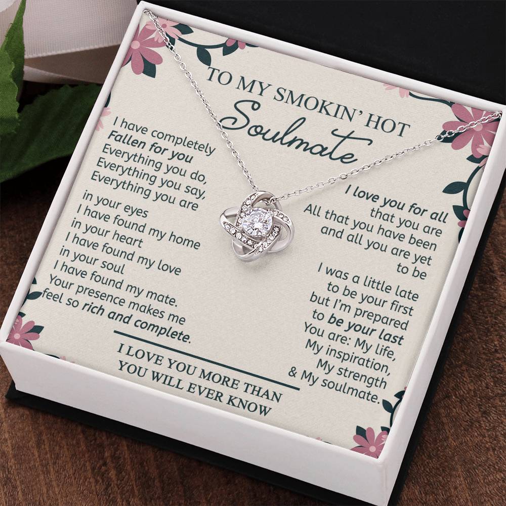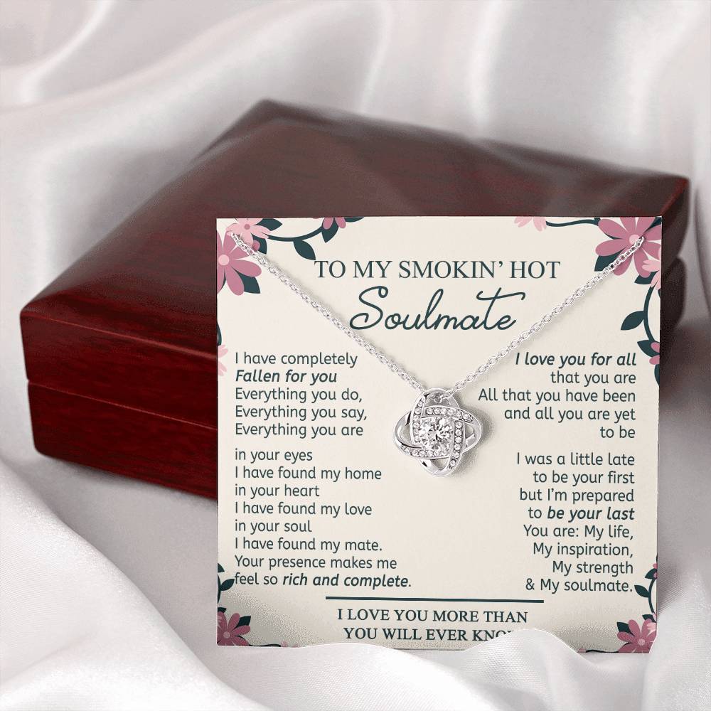 To My Smokin' Hot Soulmate Necklace, Gift Love Knot Pendant Soulmate From Husband Gift Necklace For Wife Birthday From Husband Romantic Gift Nekclace For My Wife Ever Jewelry Gift For Women