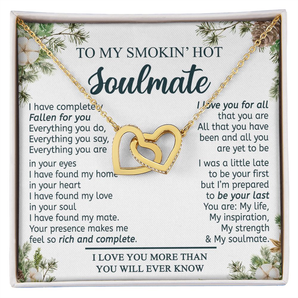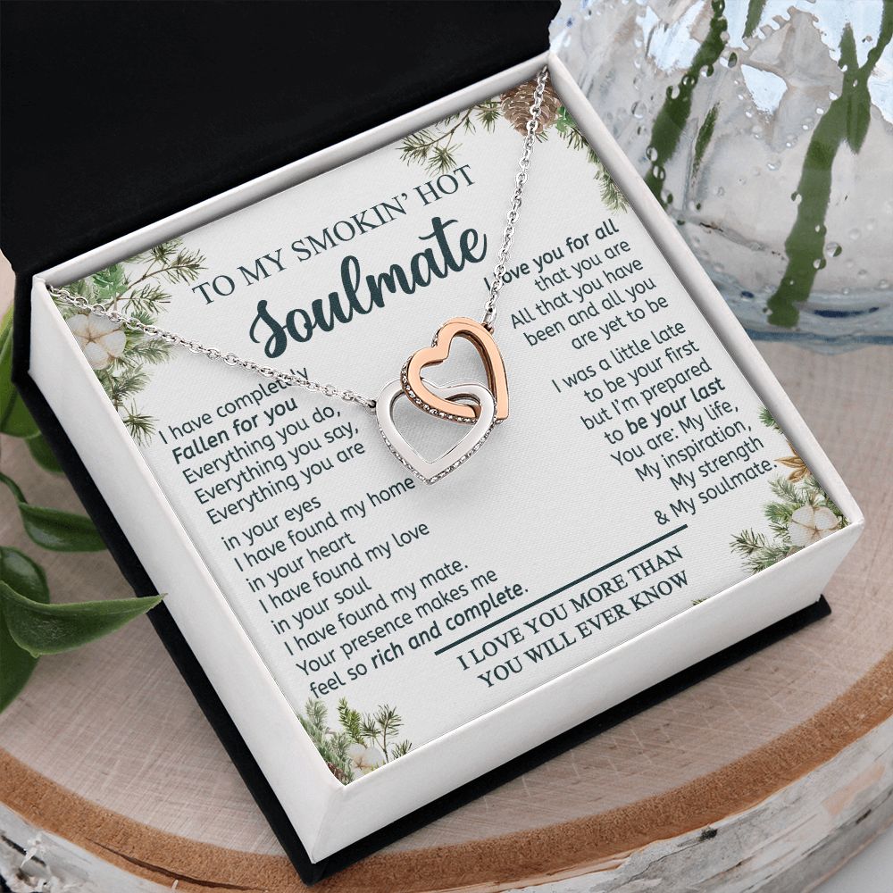 To My Smokin Hot Soulmate Necklace - Wife Gifts From Husband To My Wife Necklace, Gift for Her Romantic, Girlfriend Gifts Necklace for Wife from Men Includes Message Card and Gift Box 11 Interlocking Hearts Necklace