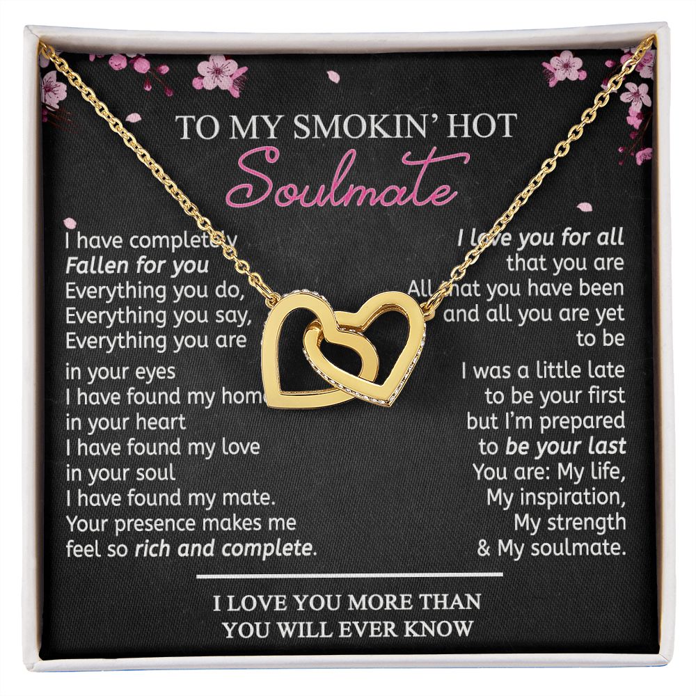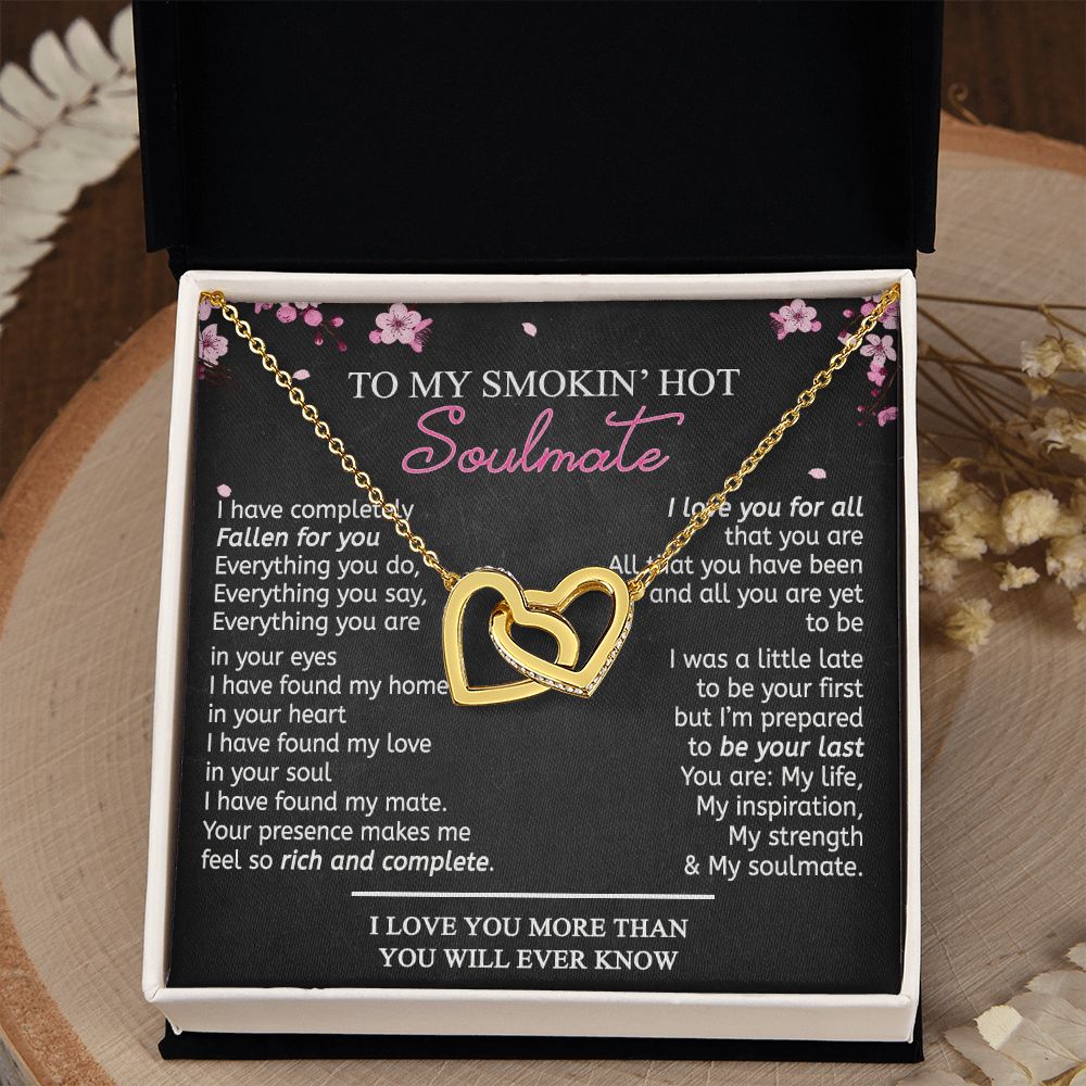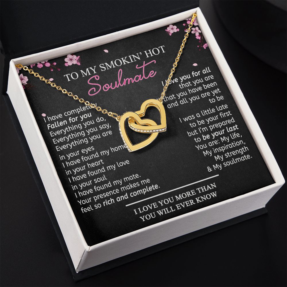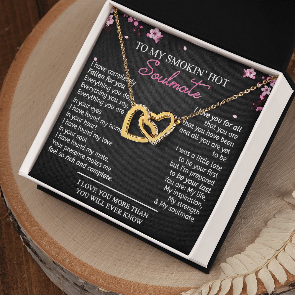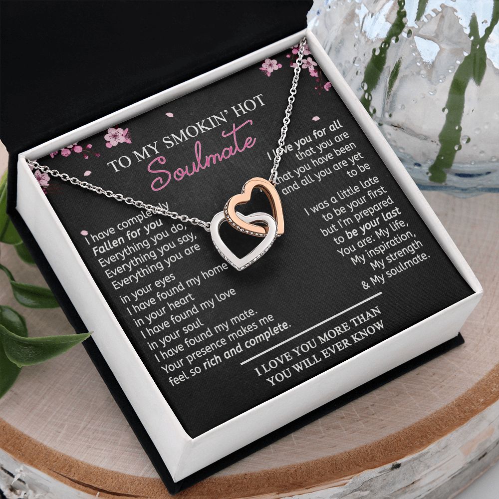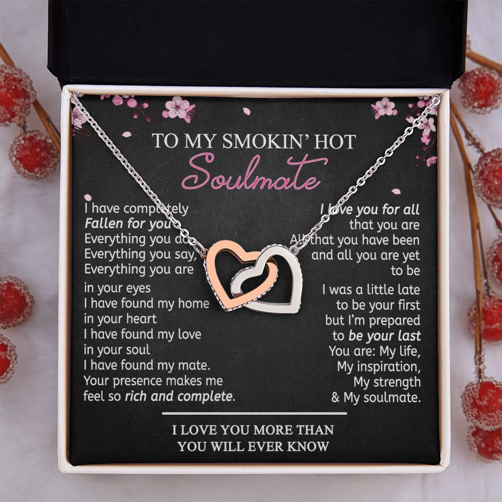 To My Smokin Hot Soulmate Necklace - Wife Gifts From Husband To My Wife Necklace, Gift for Her Romantic, Girlfriend Gifts Necklace for Wife from Men Includes Message Card and Gift Box 12 Interlocking Hearts Necklace