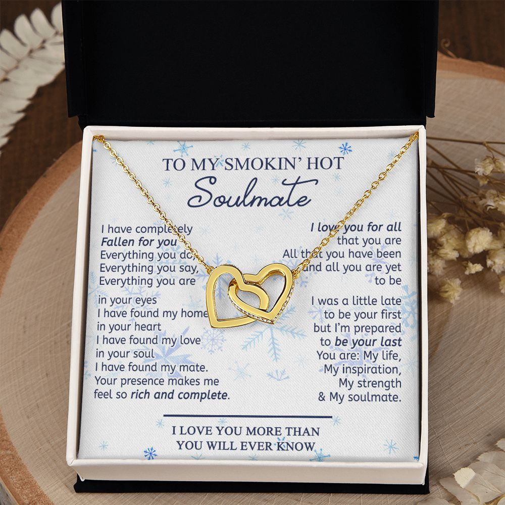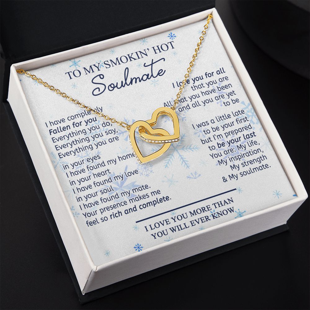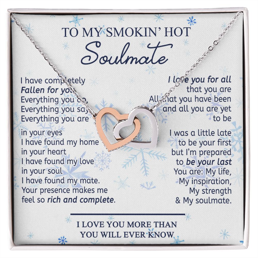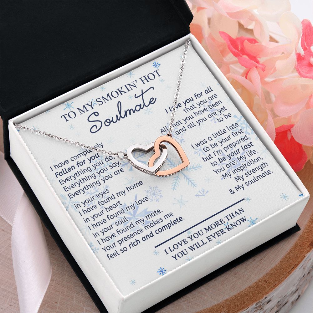 To My Smokin Hot Soulmate Necklace - Wife Gifts From Husband To My Wife Necklace, Gift for Her Romantic, Girlfriend Gifts Necklace for Wife from Men Includes Message Card and Gift Box 13 Interlocking Hearts Necklace
