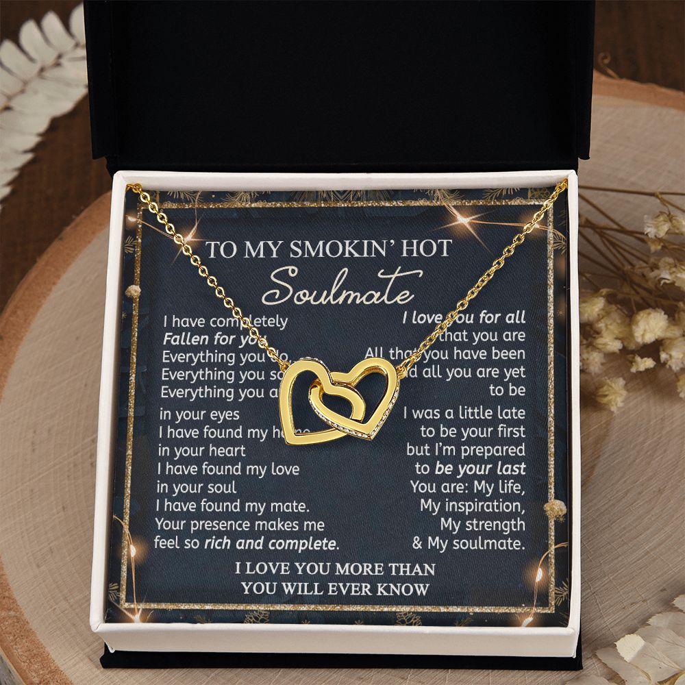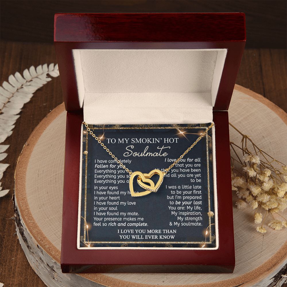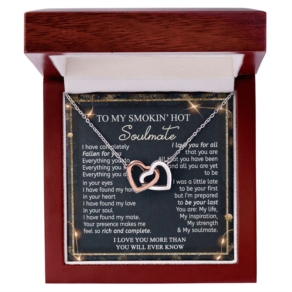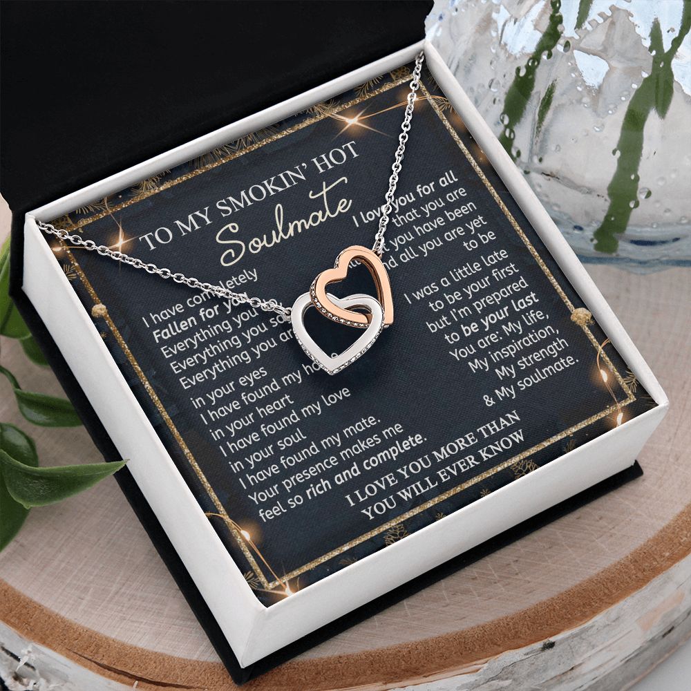 To My Smokin Hot Soulmate Necklace - Wife Gifts From Husband To My Wife Necklace, Gift for Her Romantic, Girlfriend Gifts Necklace for Wife from Men Includes Message Card and Gift Box 14 Interlocking Hearts Necklace