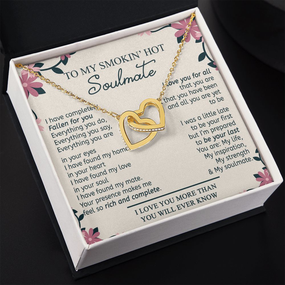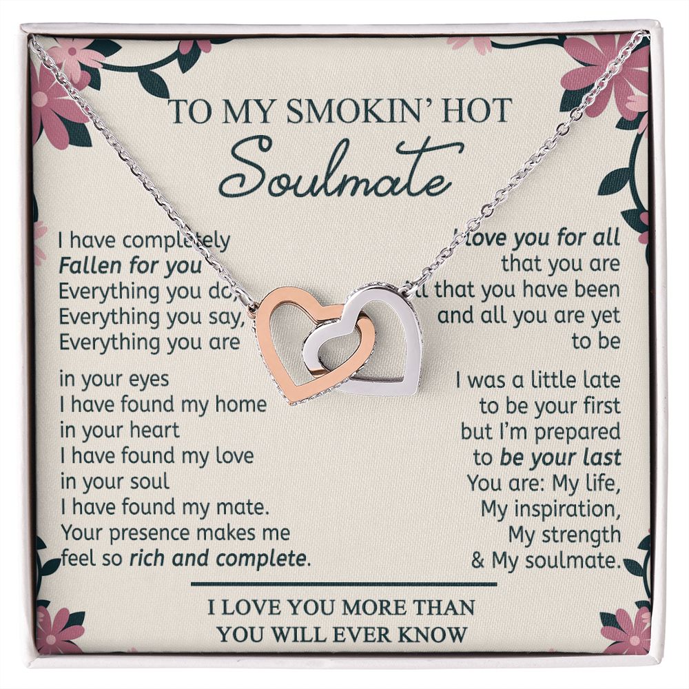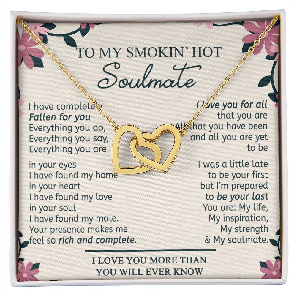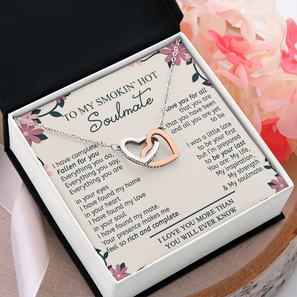 To My Smokin Hot Soulmate Necklace - Wife Gifts From Husband To My Wife Necklace, Gift for Her Romantic, Girlfriend Gifts Necklace for Wife from Men Includes Message Card and Gift Box 17 Interlocking Hearts Necklace
