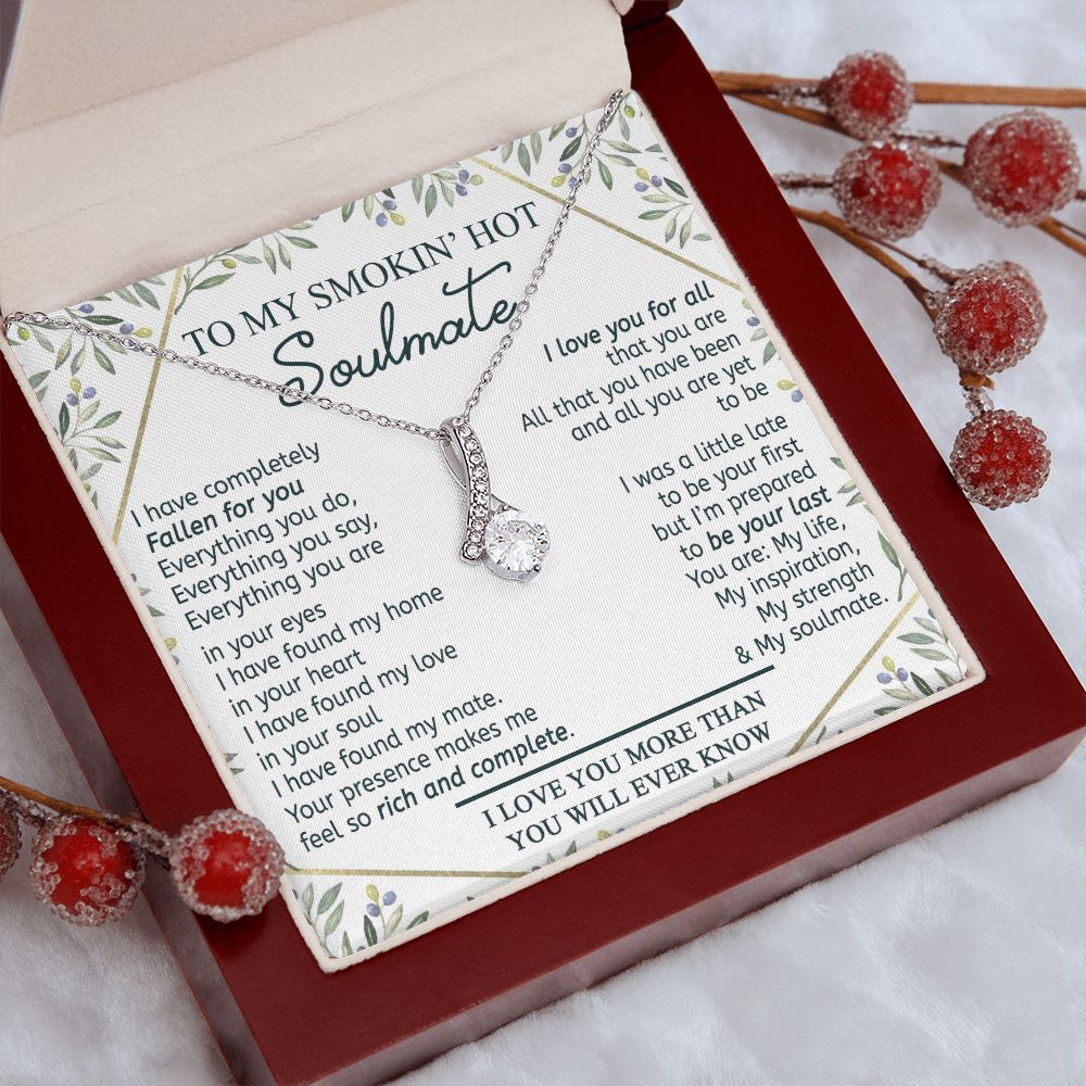 To My Smokin Hot Soulmate Necklace - Wife Gifts From Husband To My Wife Necklace, Gift for Her Romantic, Girlfriend Gifts Necklace for Wife from Men Includes Message Card and Gift Box 18 Alluring Beauty Necklace