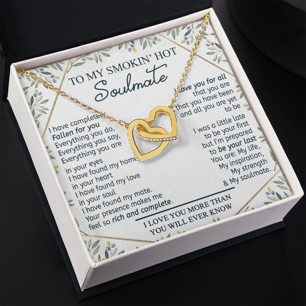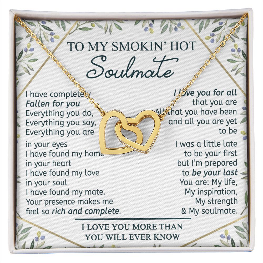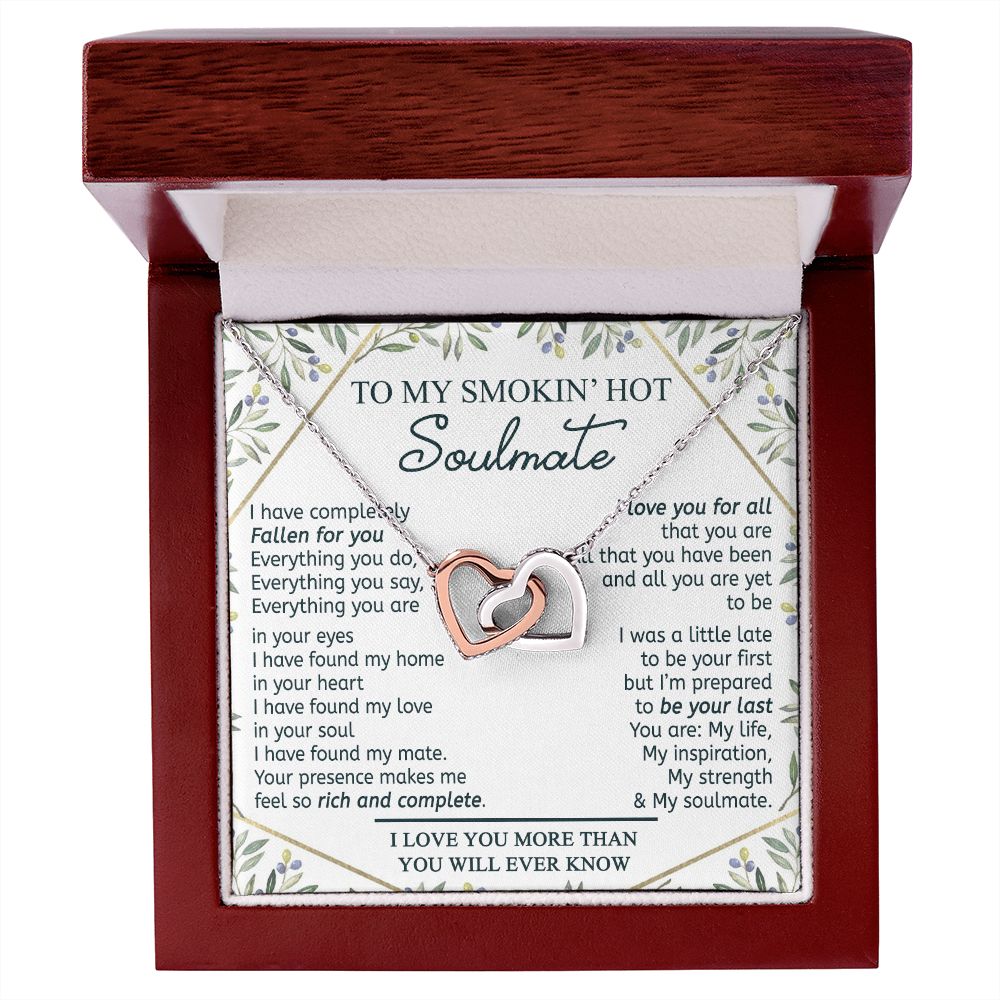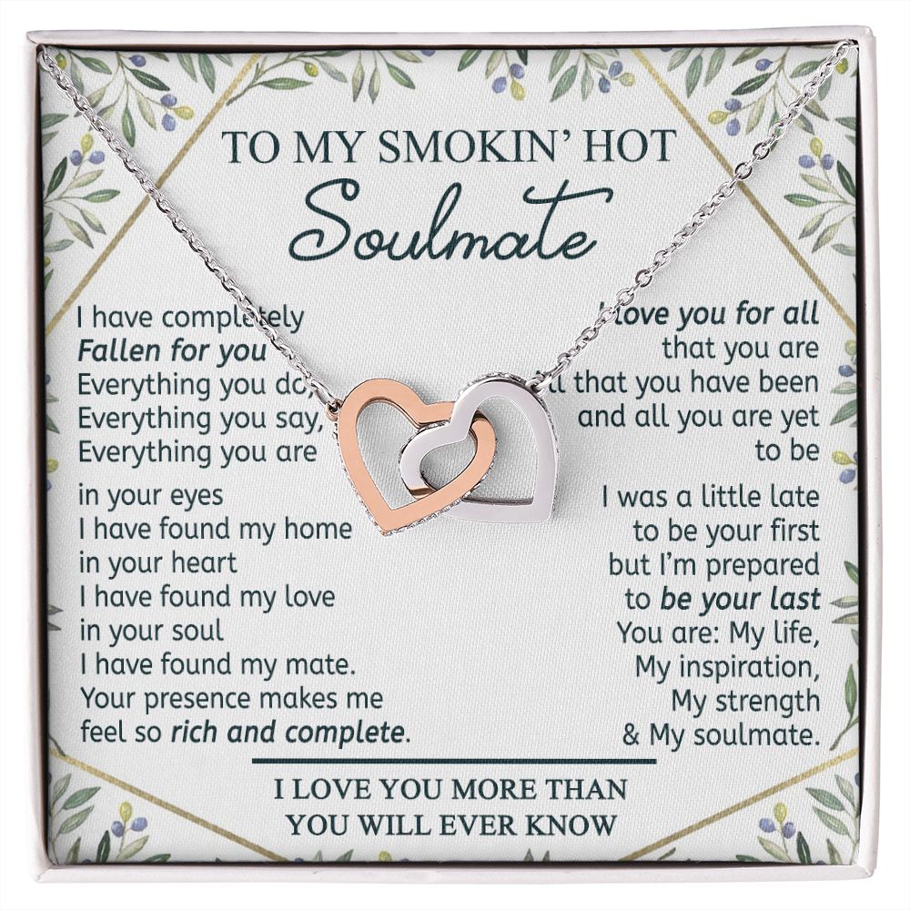 To My Smokin Hot Soulmate Necklace - Wife Gifts From Husband To My Wife Necklace, Gift for Her Romantic, Girlfriend Gifts Necklace for Wife from Men Includes Message Card and Gift Box 18 Interlocking Hearts Necklace