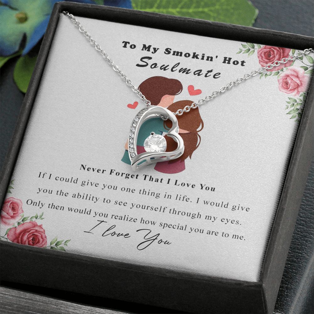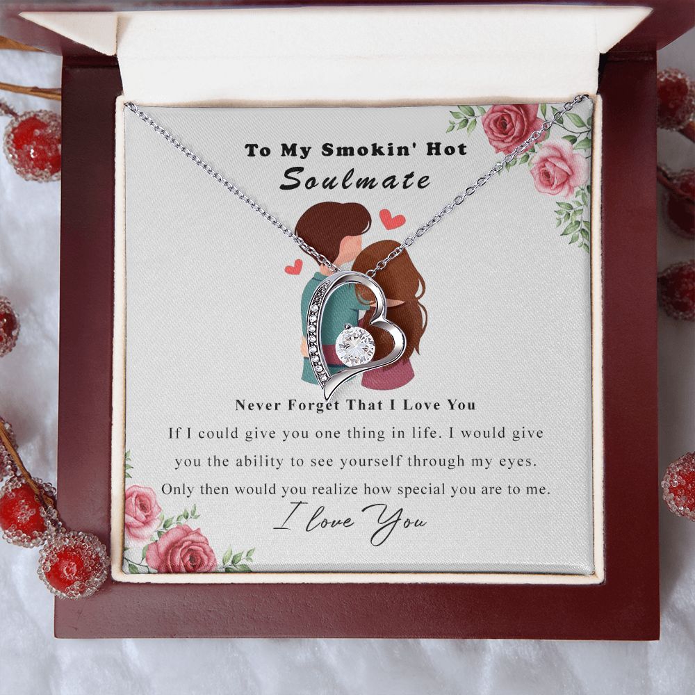 To My Smokin Hot Soulmate Necklace - Wife Gifts From Husband To My Wife Necklace, Gift for Her Romantic, Girlfriend Gifts Necklace for Wife from Men Includes Message Card and Gift Box Forever Love Necklace
