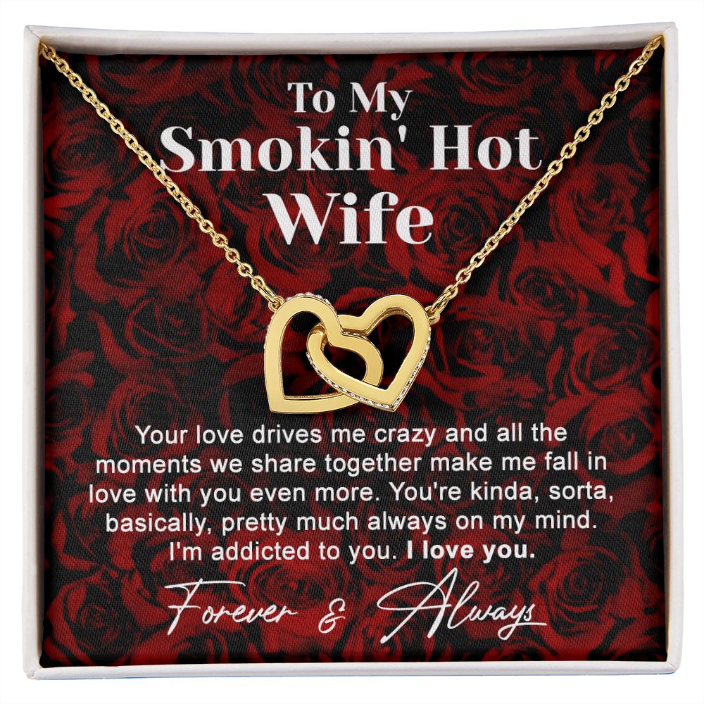 To My Smokin Hot Wife Necklace, Wedding Anniversary Jewelry For Women, Necklace For Wife from Husband, Gifts For Wife Birthday Gifts Necklace, Jewelry With Message Card In A Gift Box4 Interlocking Hearts Necklace