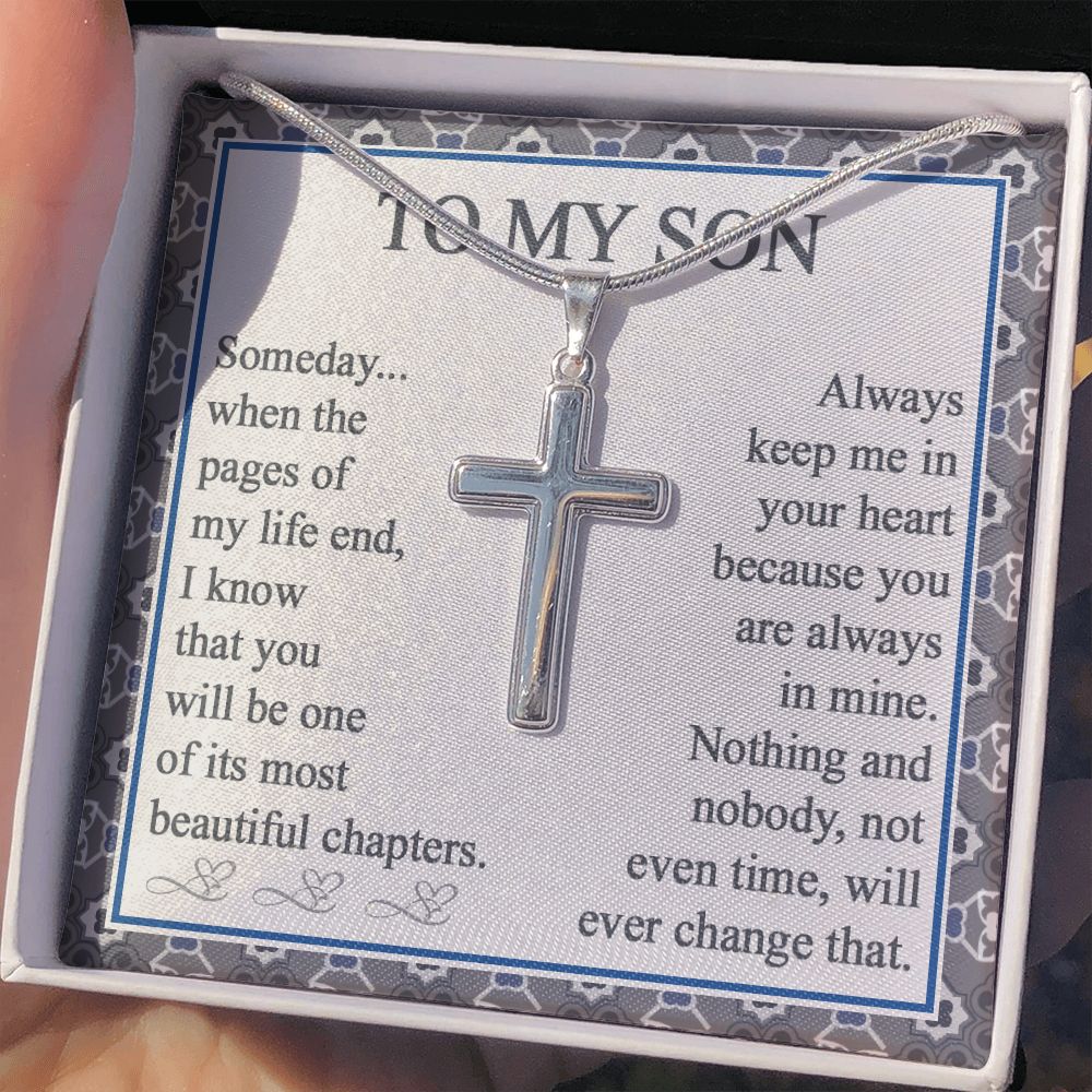 To My Son Artisan Cross Necklace with Message Card and Gift Box Gift for Son From Mom And Dad Jewelry For Men Stainless Artisan Crafted Cross Necklace with Message Card Luxury Box Personalized Cross Necklace