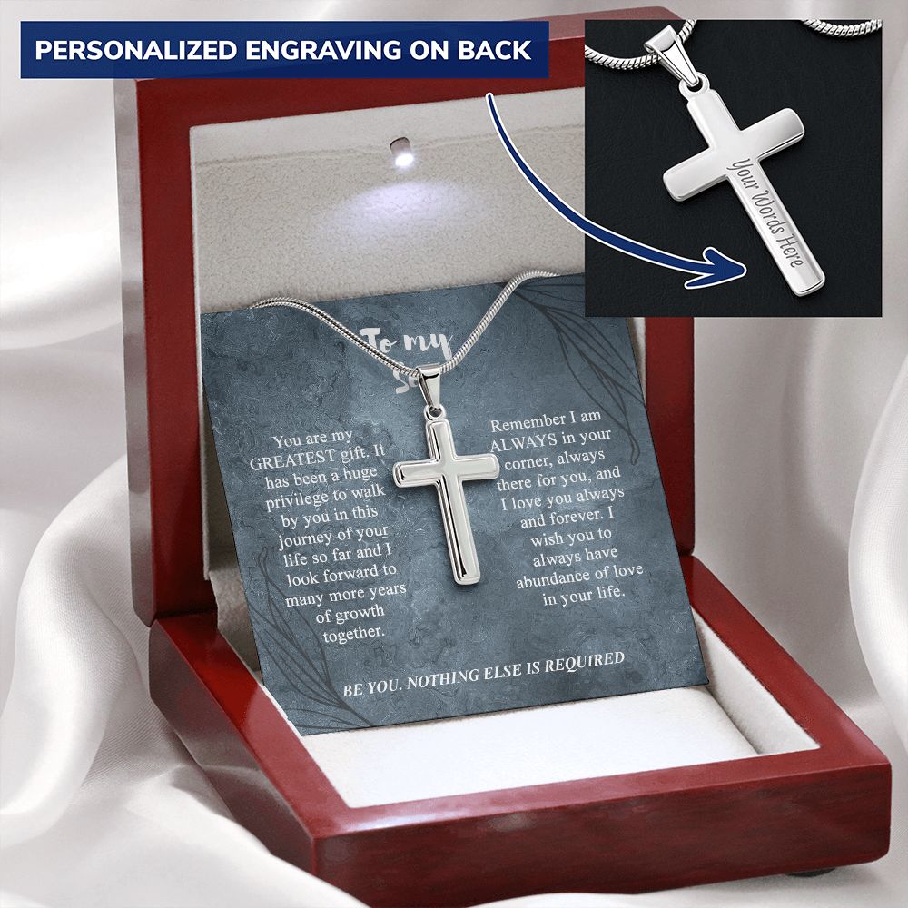 To My Son Cross Necklace From Mom, Son Birthday Gift Necklace, Message Card Gift For Son From Mom Or Dad, Jewelry Gift For Men, Artisan Crafted Cross Necklace Gift For Son You Are My Greatest Gift Personalized Cross Necklace